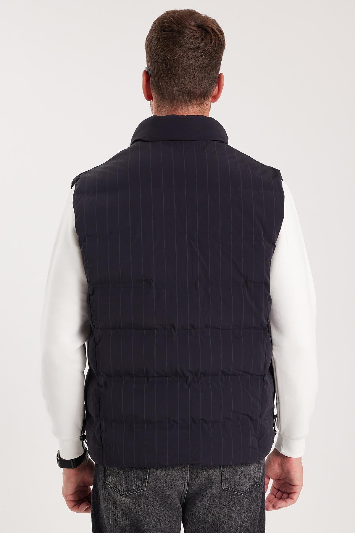 Erkek Standart Fit Normal Kesim Sıfır Kol Çift Cepli Fermuarlı Şişme Lacivert Yelek
