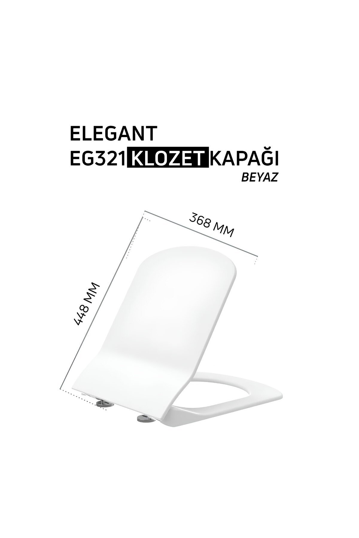Elegant Beyaz Kanalsız Asma Klozet EG321, Elegant Duroplast Yavaş Kapak