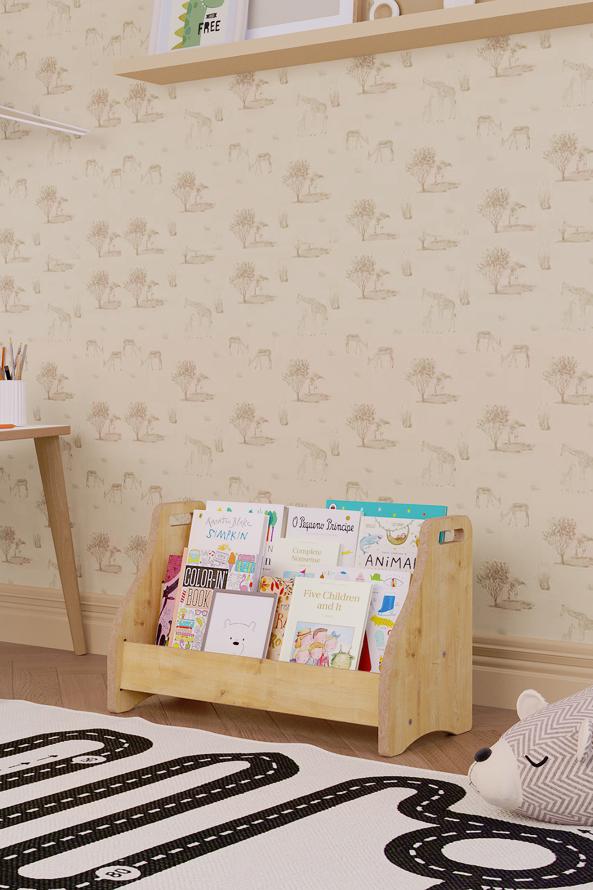 Montessori Zemin Kitaplığı 2 Katlı Yer Kitaplığı Mini Çocuk Kitaplık - Safir Meşe
