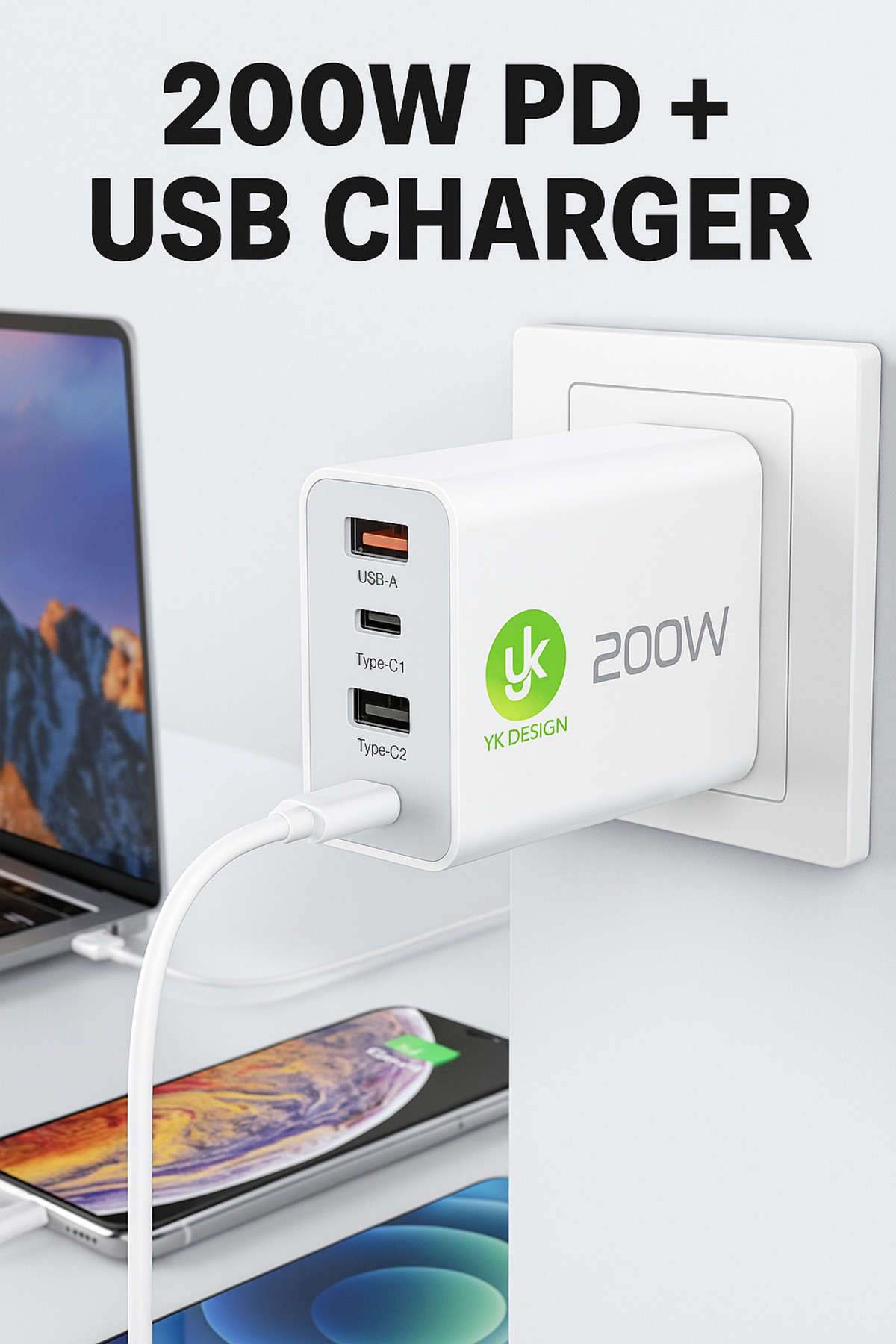 Çoklu Port 2×USB + 2×Type-C PD/QC Hızlı Şarj Cihazı - 4 Port Çok Fonksiyonlu Adaptör