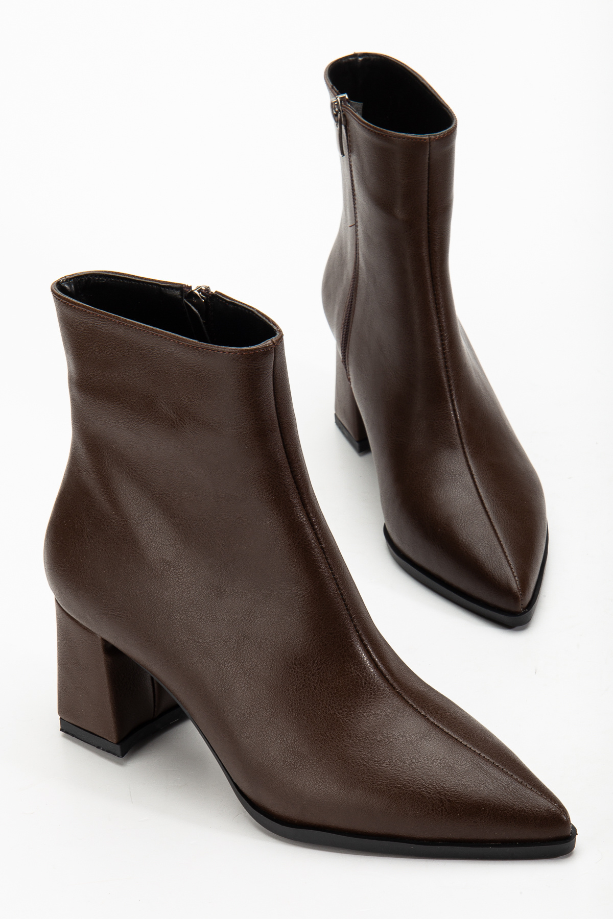 Acı Kahve Deri Sivri Burunlu Kadın Topuklu Bot
