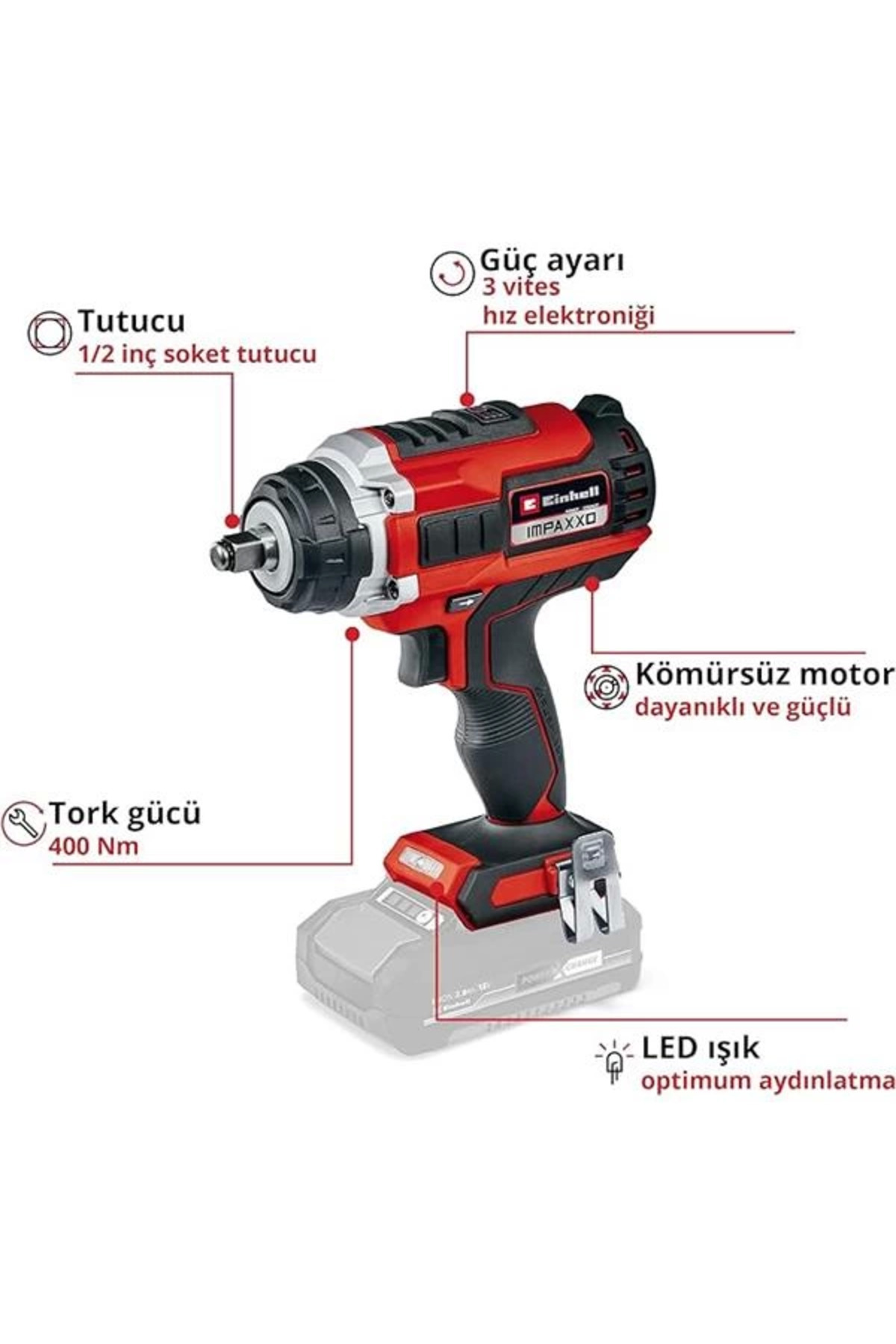 Bu ürün hakkında Kömürsüz motor Az bakım gerektiren ve güçlü kömürsüz motor geleneksel kömürlü motorlara kıyasla daha uzun çalışma süresiyle maksimum sağlar Güçlü QuickStop fonksiyonu ve sağsol dönüş özelliğine sahip darbeli somun sıkma fonksiyonu sayesinde 450 Nm tork (800 Nm sökme torku) ile güçlü çalışma imkanı sunar Tork ve hız üç farklı kademede ayarlanabilir 1 kademe hassas çalışmalar için uygundur 3 kademe ise lastik değişimi için maksimum gücü sağlar Mükemmel aydınlatma Entegre LED ışık karanlık ve erişimi zor bölgelerde dahi net görüş ve mükemmel aydınlatma sağlar Aksesuar dahil 12 dış kare uç bağlantısına sahip akülü darbeli somun sıkma cihazı vida sıkma işlemleri için bir uç adaptörü ve lastik değişimi için lokma setiyle birlikte teslim edilir
