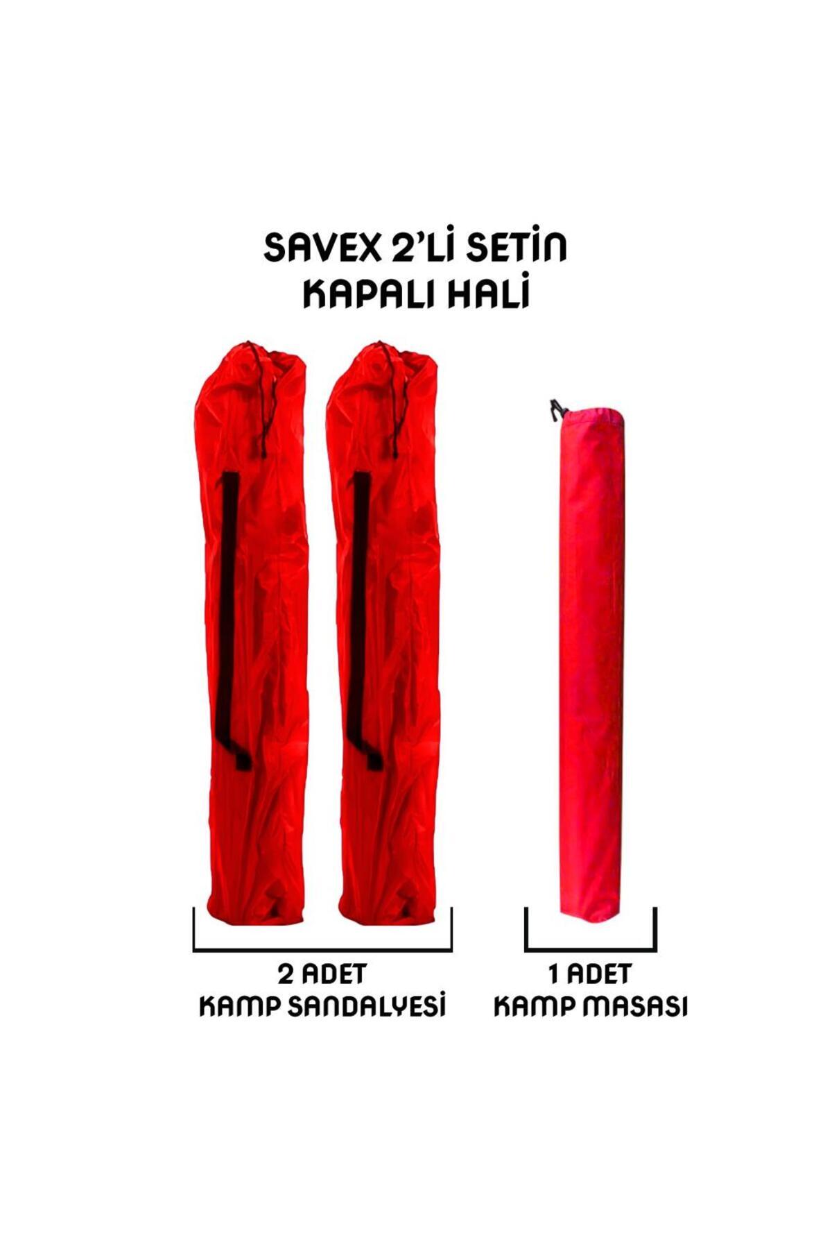 2'li Bardaklı Katlanabilir Sandalye ve Masa Seti - Kırmızı (DY.001)