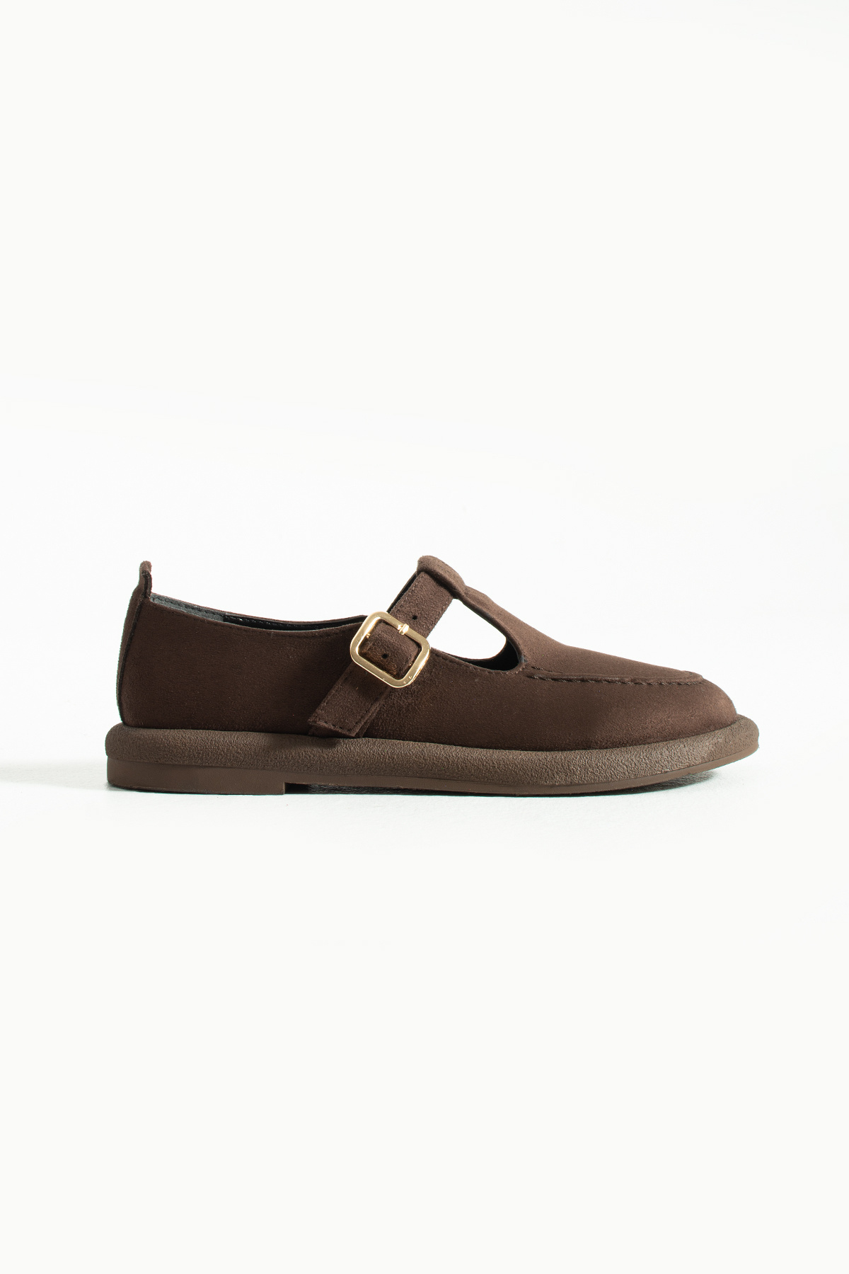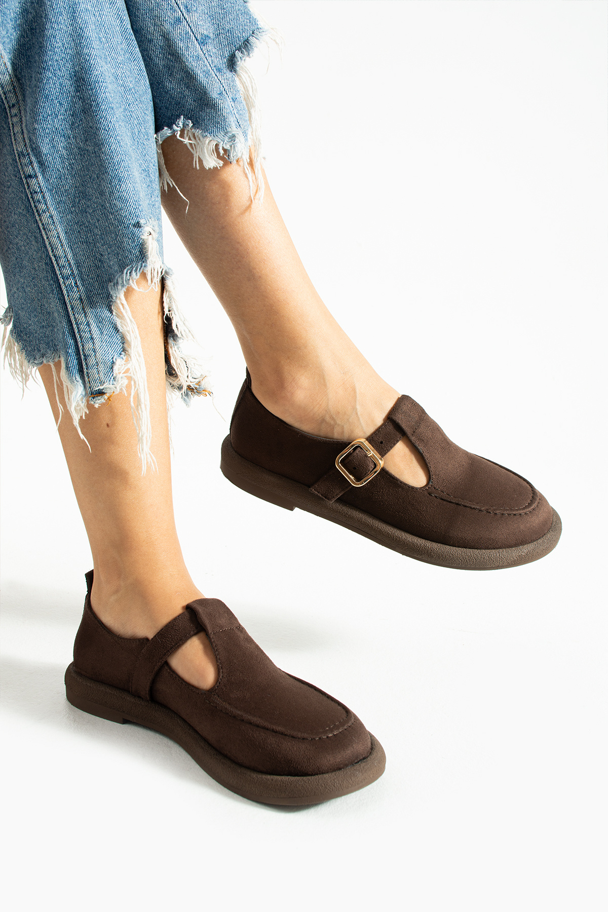 ün boyu konfor ve şıklığı bir arada yaşamak isteyenler için tasarlandı! Bu taba süet T-Bar tokalı loafer ayakkabı, hem modern hem de zamansız tarzı ile dolabınızın vazgeçilmezi olacak.