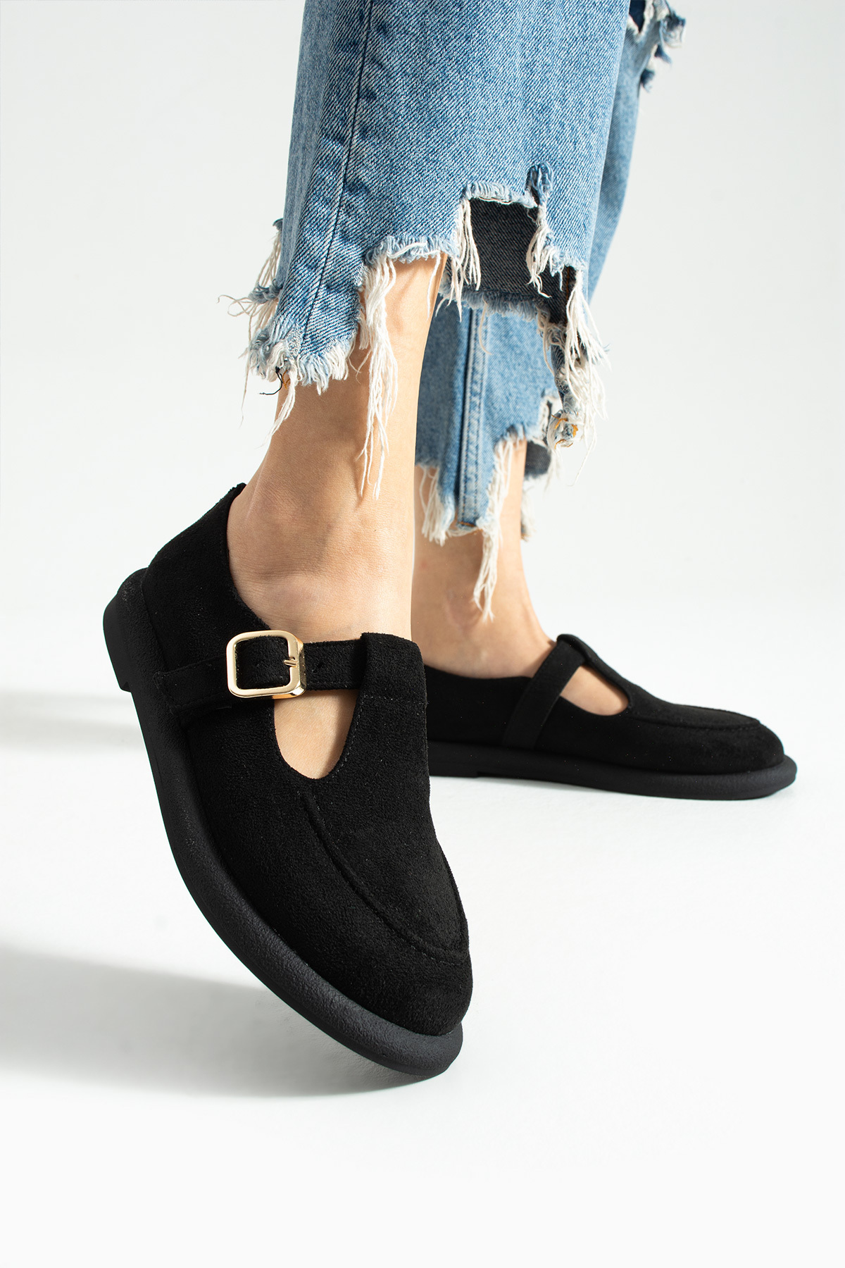 ün boyu konfor ve şıklığı bir arada yaşamak isteyenler için tasarlandı! Bu taba süet T-Bar tokalı loafer ayakkabı, hem modern hem de zamansız tarzı ile dolabınızın vazgeçilmezi olacak.