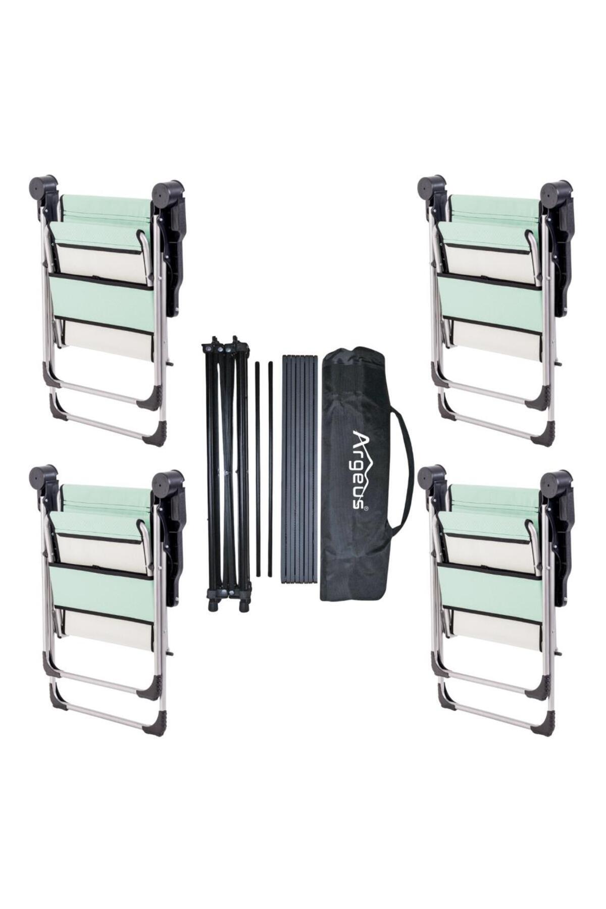4 Adet Katlanır Kamp Sandalyesi ve Alüminyum Masa Seti - Rock Dark - Su Yeşili - Taşıma Çantalı