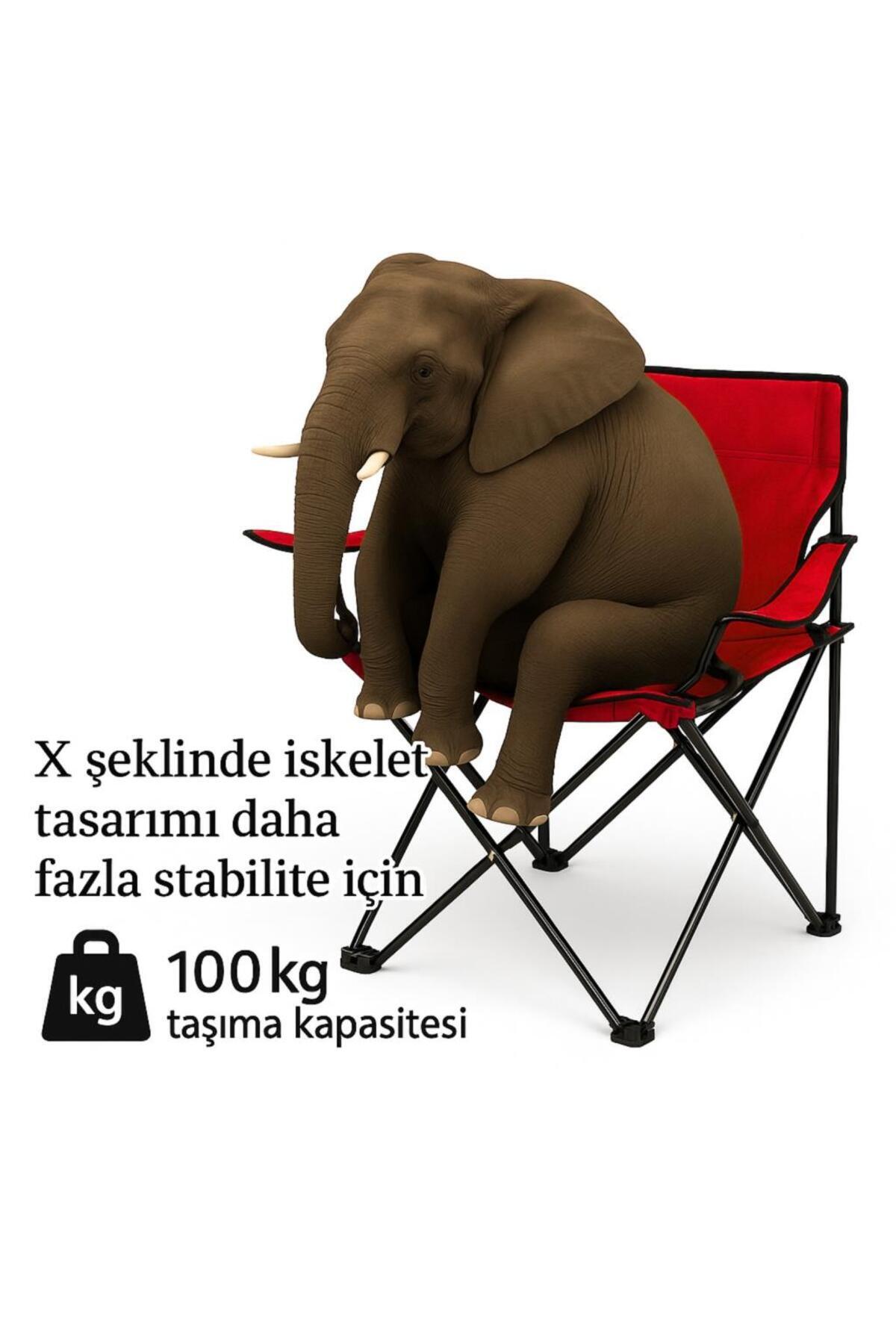 2 Adet Katlanır Kamp Sandalyesi ve Masa Seti - (DY.001) - Kırmızı/Sarı - Plaj Sandalyesi
