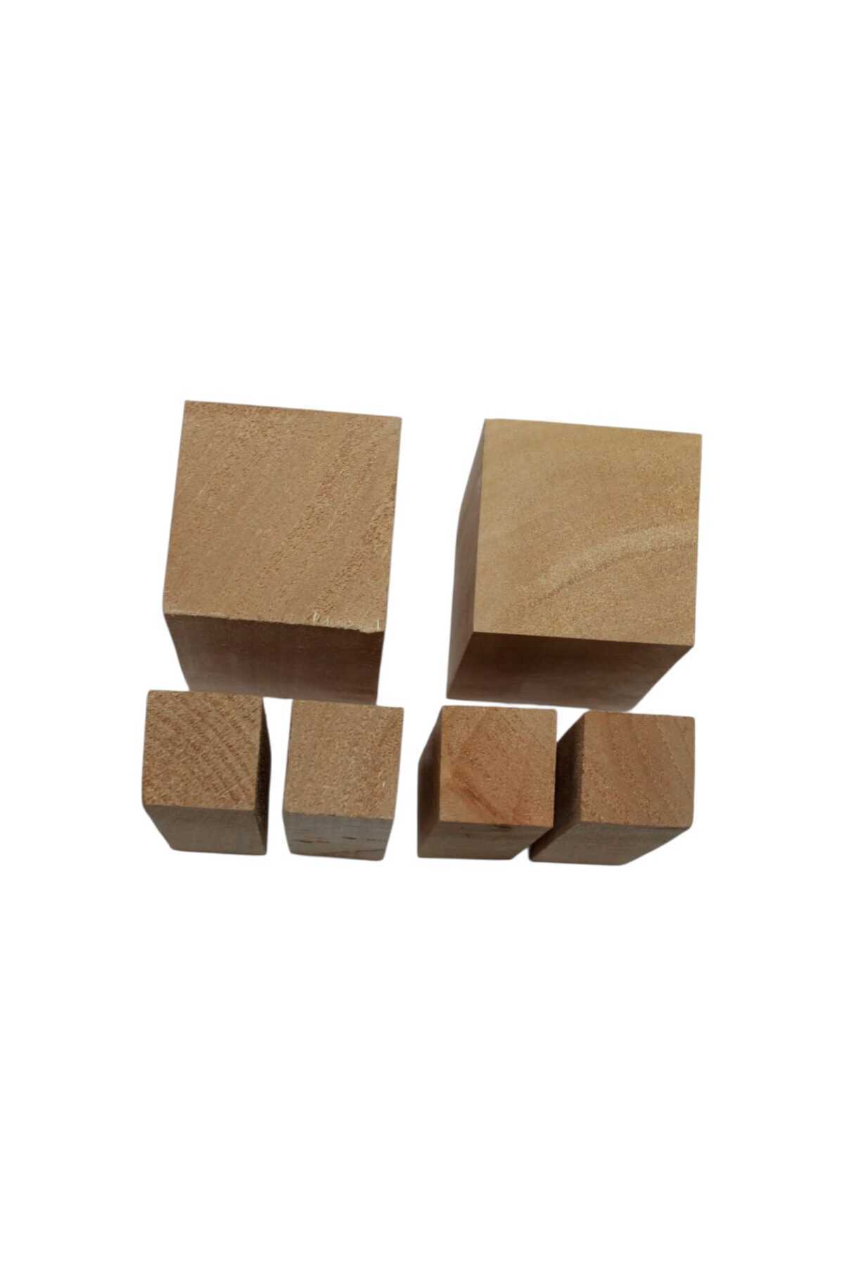 6’lı Ihlamur Ahşap Oyma Blok Seti – 2 Adet 5x5x10 cm + 4 Adet 2,5x2,5x10 cm