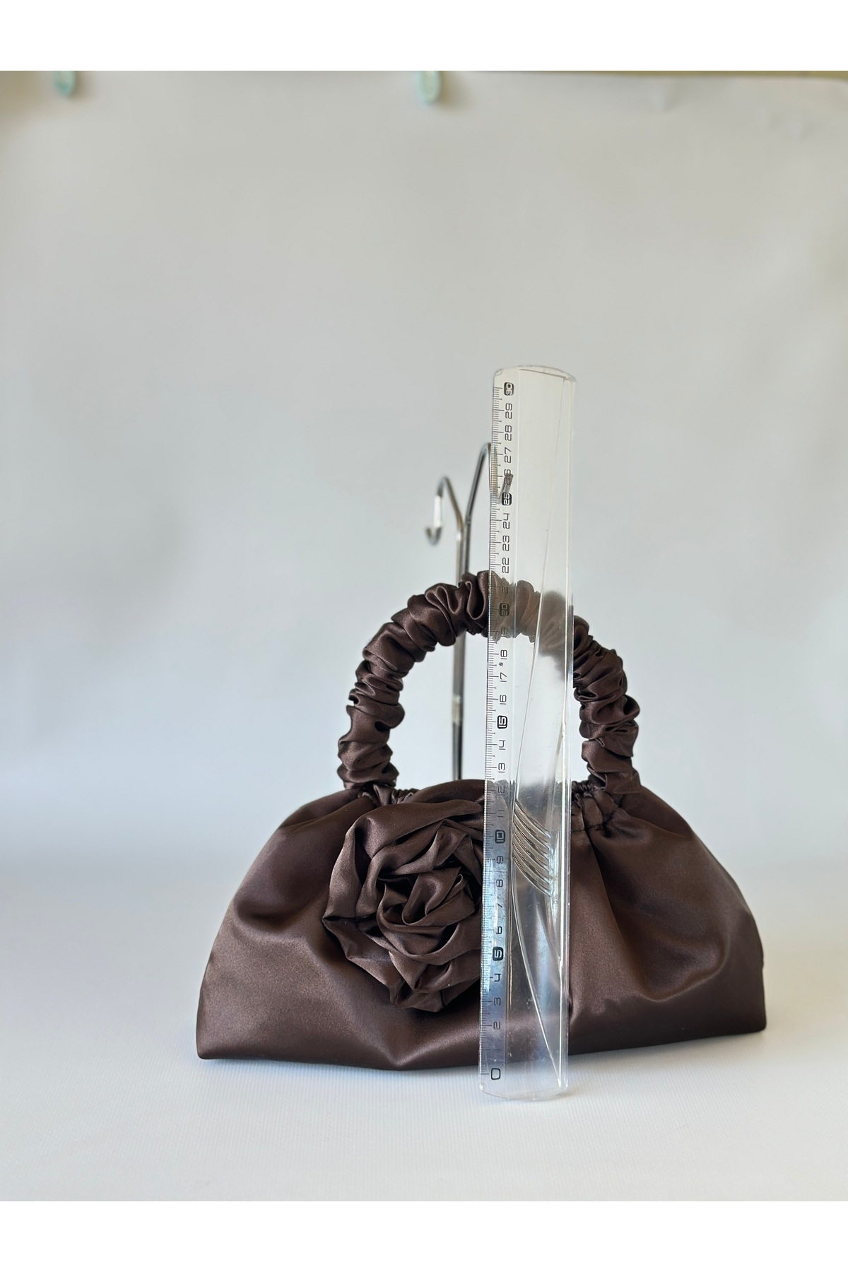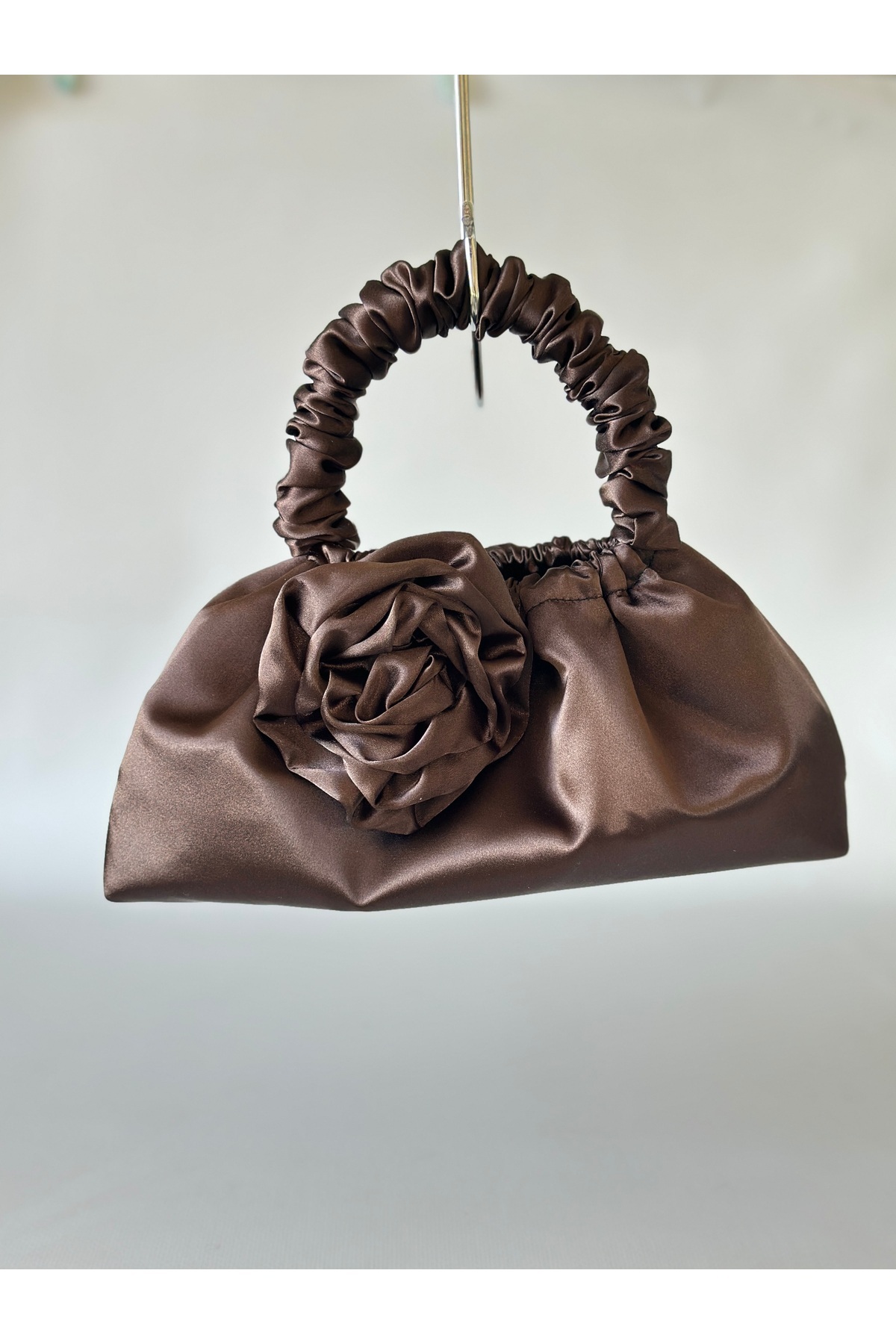 İçi astarlı ağız kısmı lastikli büzgülüdür çıtçıt mevcuttur içerisine telefon kartlık vb ürünler sığabilmektedir boyutları görsellerde mevcuttur küçük boy abiye el çantası olarak tasarlanmıştır Ürün kahverengi saten kumaştan oluşmaktadır görseller telefon ile yakın çekim olarak oluşturulmuştur siparişinizden önce görsellerden ölçülerini inceleyebilirsiniz .