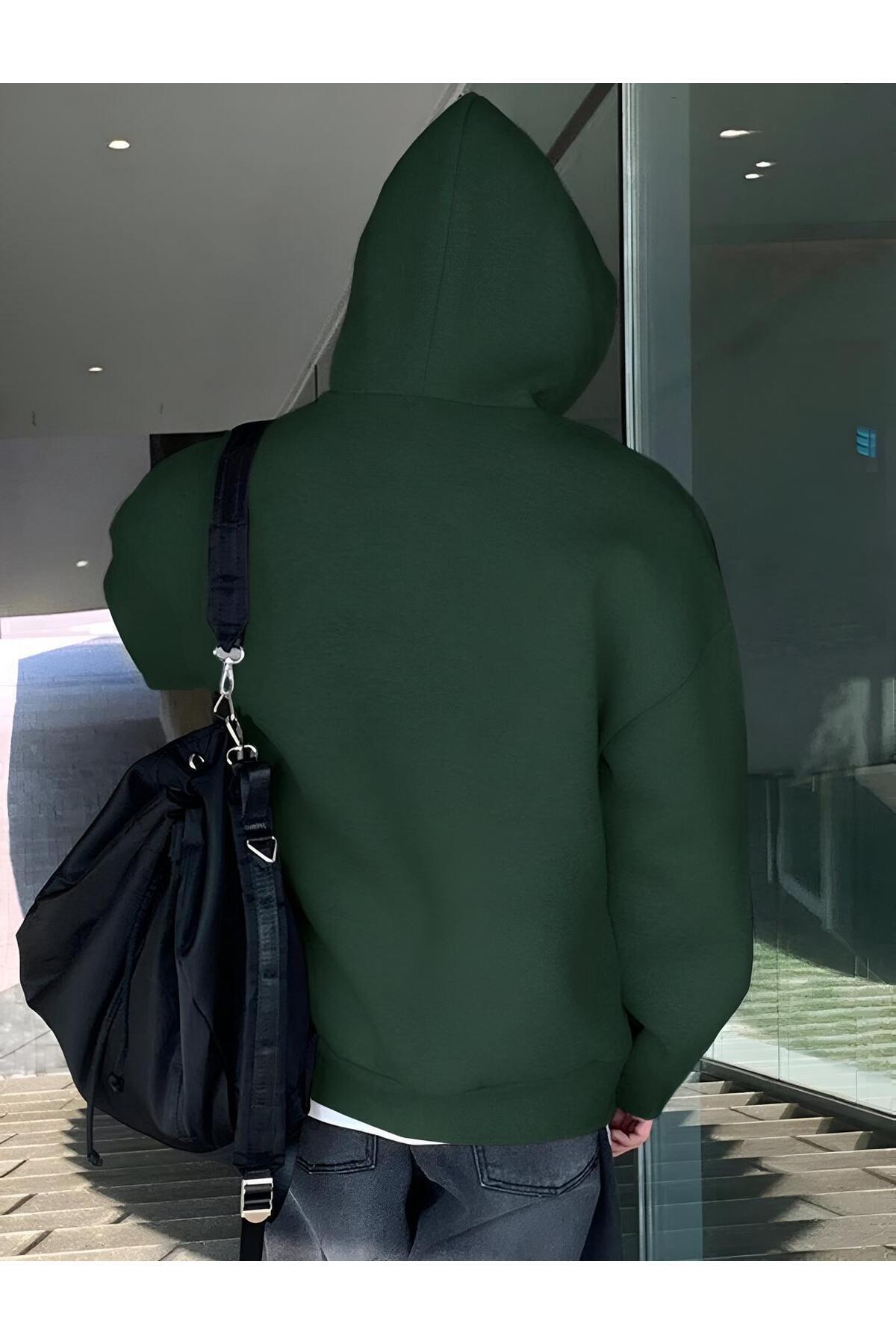 - Kış aylarında sıcak tutan, yeşil renkli kapüşonlu kanguru cepli sweatshirt, günlük kullanım için idealdir.