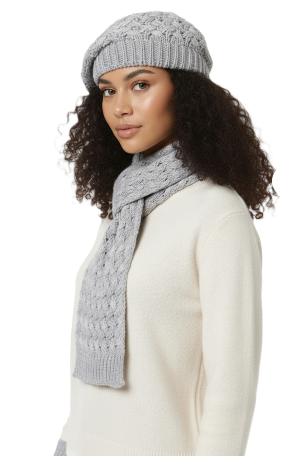 örgü bere, atkı ve eldiven ile kış aylarında sıcak tutan kombinler sunar.