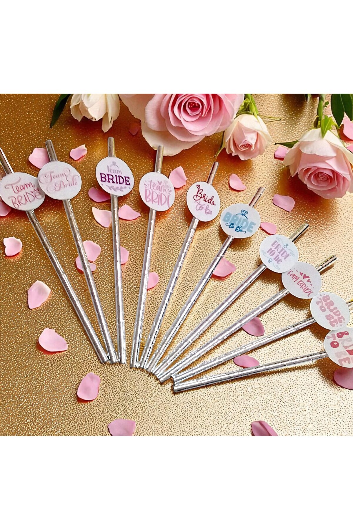 10 Adet Bride To Be Bekarlığa Veda Temalı Gümüş Silver Metalize Kağıt Pipet