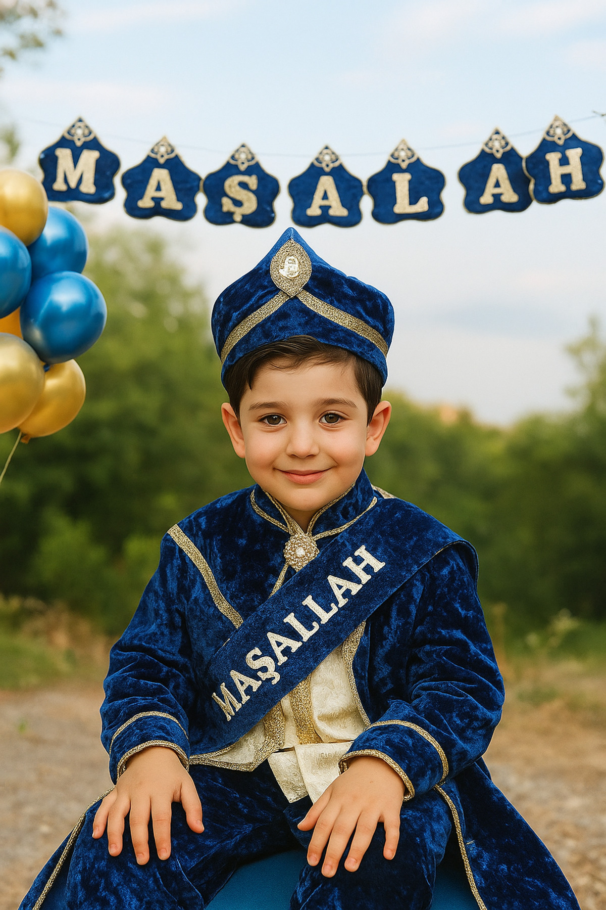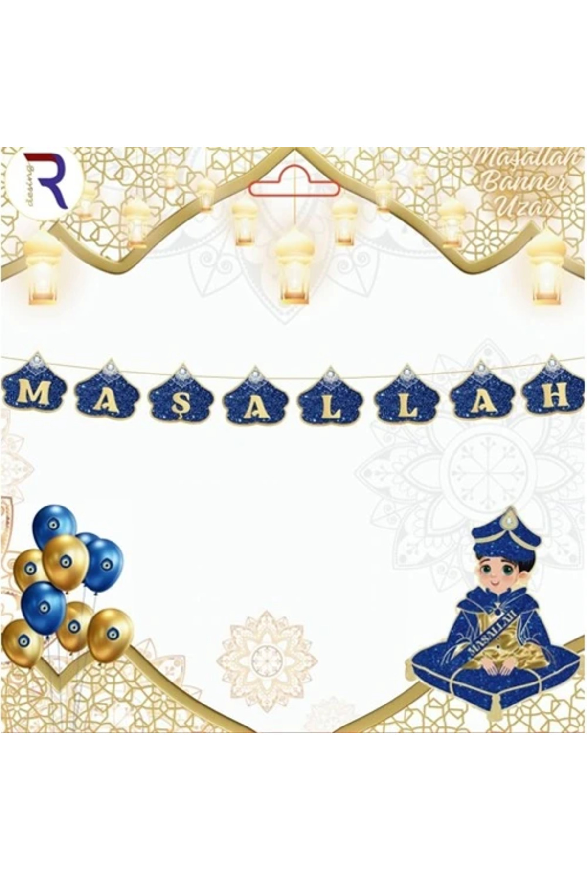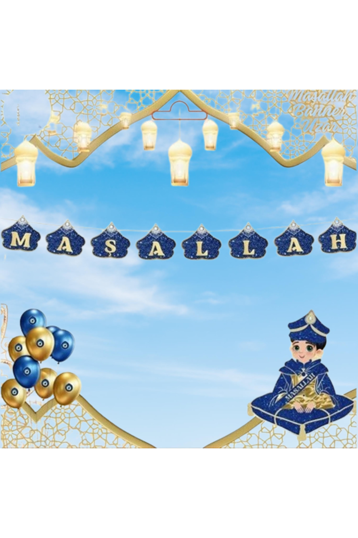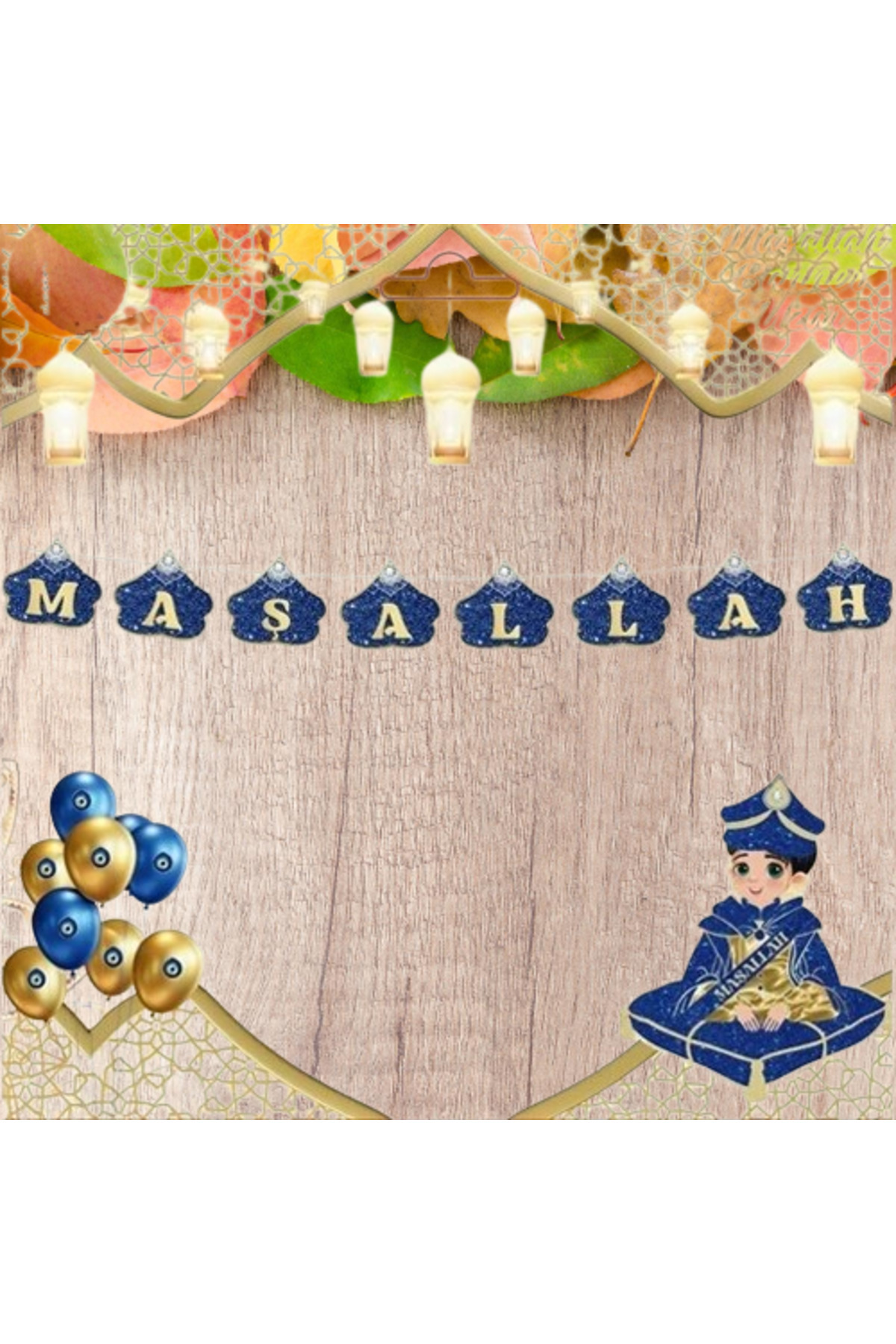 Sünnet Sünnet Maşallah Yazılı Mavi Gold Dekor Bann