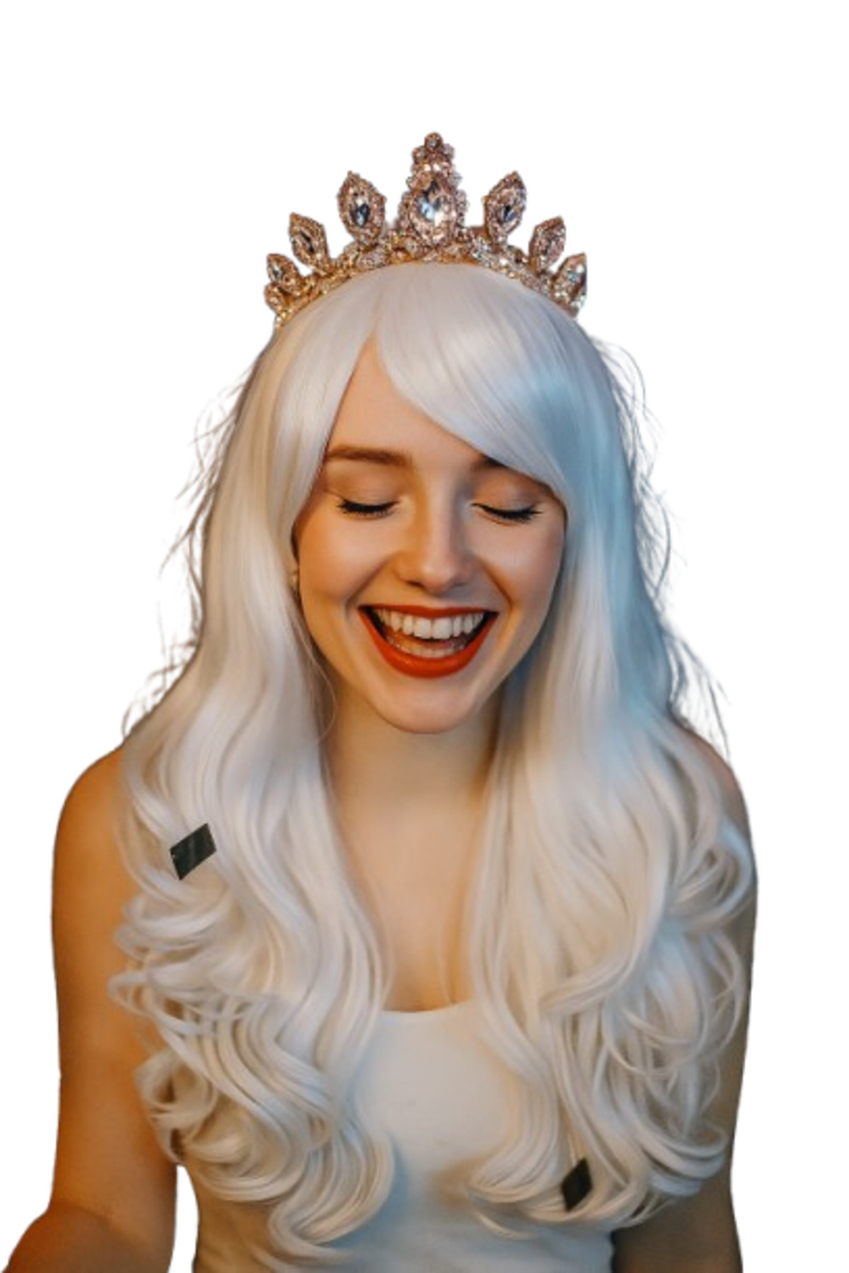 • Peruk Saç Uzun Kahküllü 50 Cm Beyaz