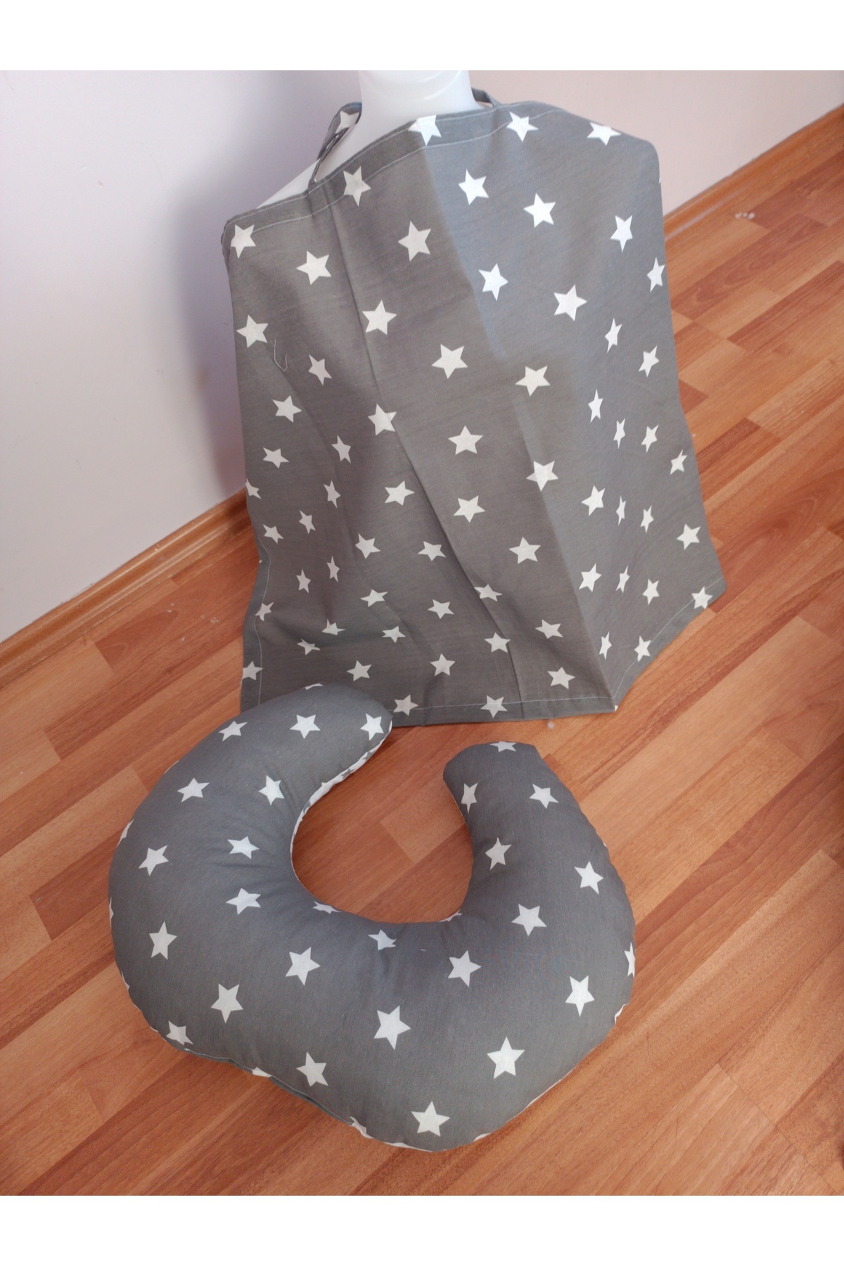 Gri Beyaz Yıldız 2 Parça Emzirme Seti