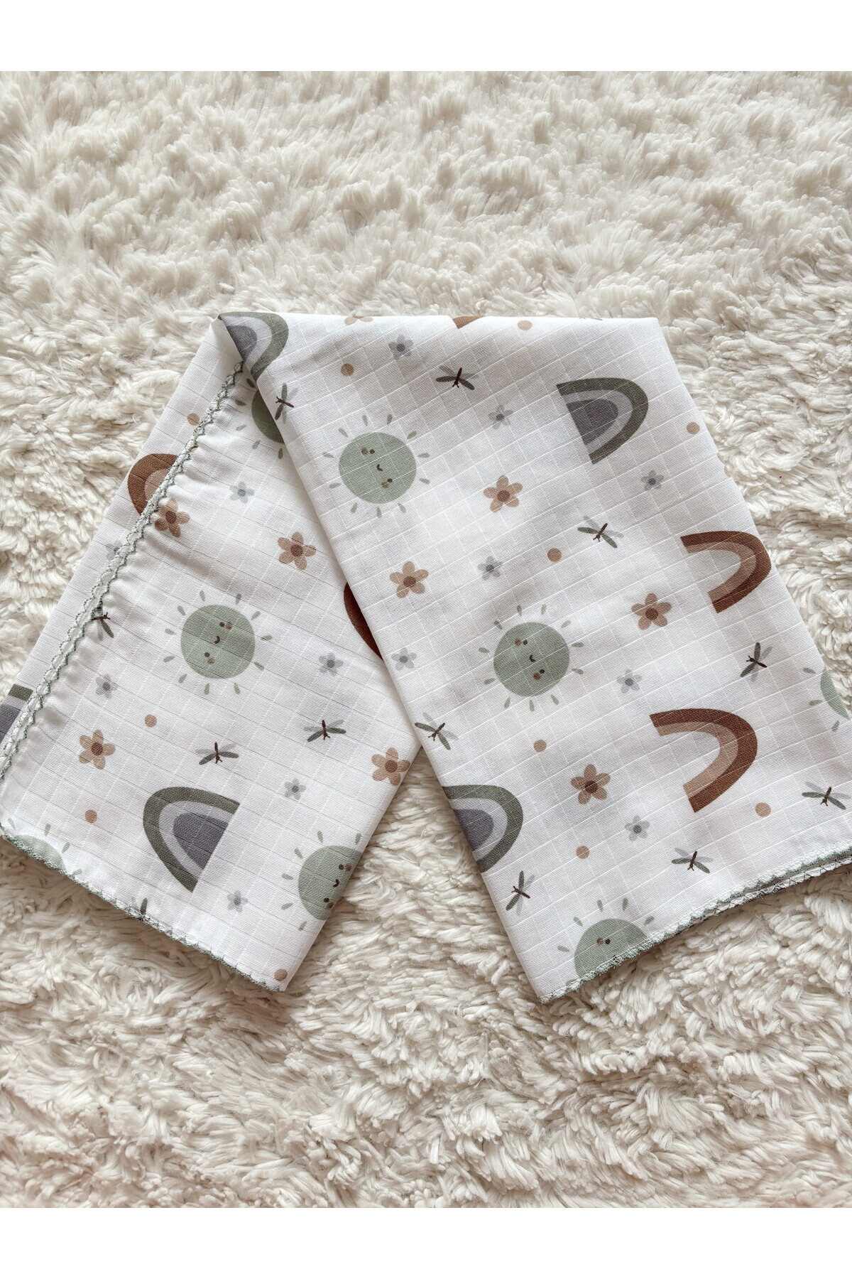 Çok Amaçlı Müslin Battaniye, 30 - Yeşil Güneş Kundak Örtüsü, 80x90 Cm Bebek, Yeni Doğan Battaniye