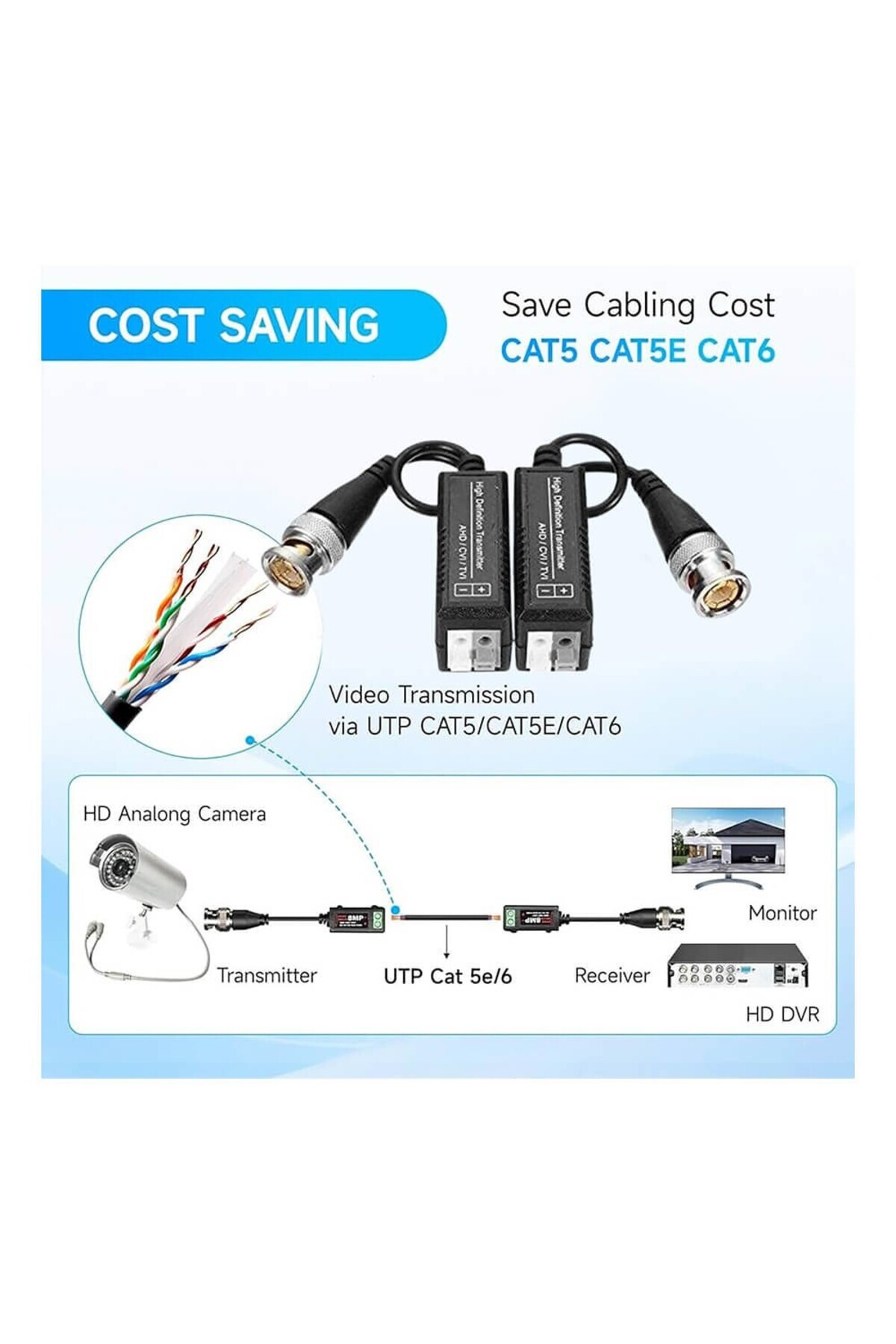 CCTV Video Balun BNC HD TVI AHD CVI Kamera İçin CAT5/CAT6 UTP 1 Set (2 Adet)