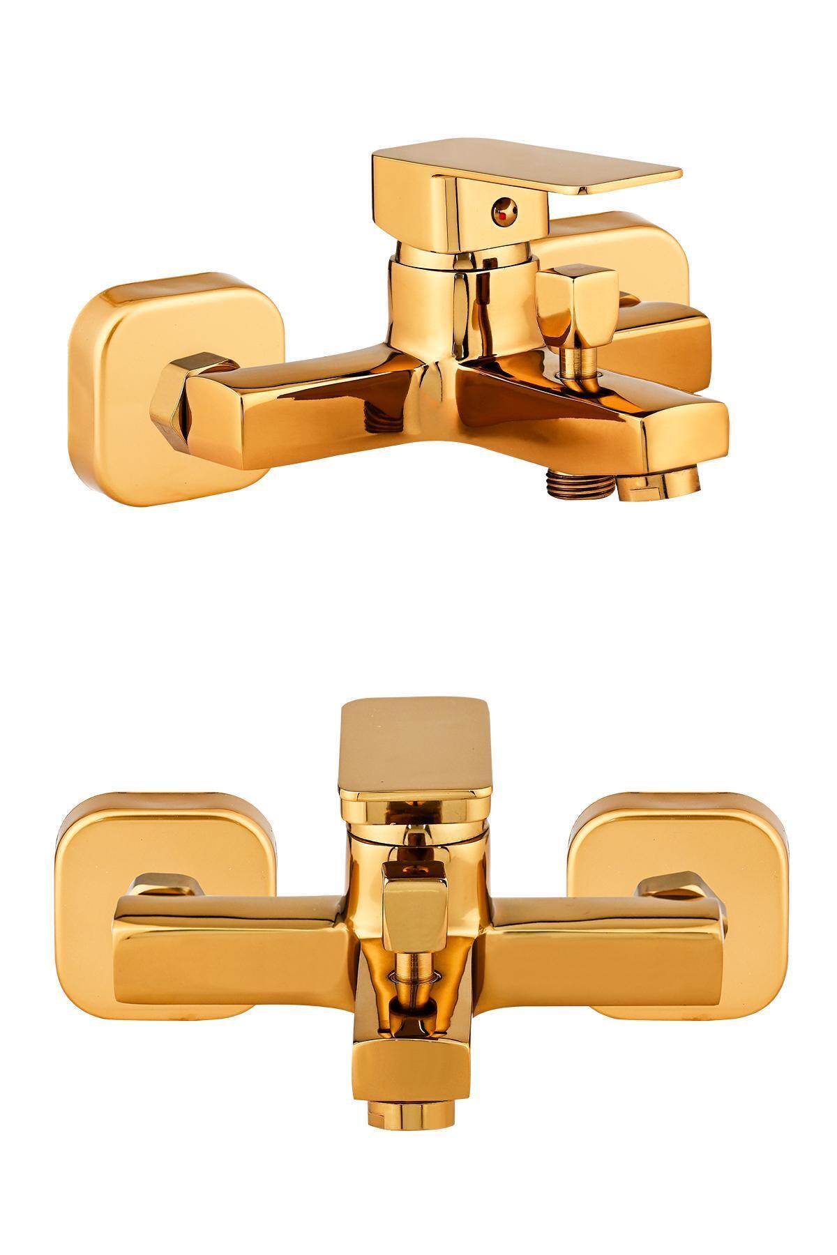 Kare Gold Mutfak Lavabo Banyo Bataryası Set Tepe Duş Seti Lüks Batarya