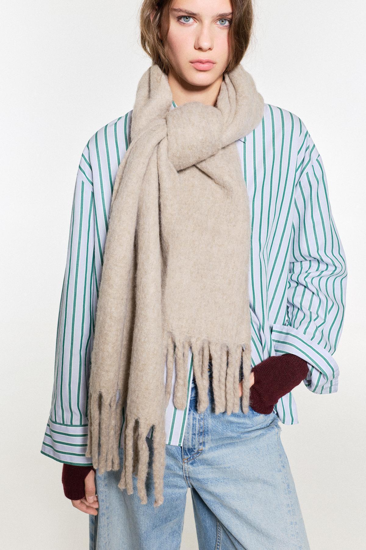 Farklı renklerde mevcut, moher görünümlü örgü maksi atkı.