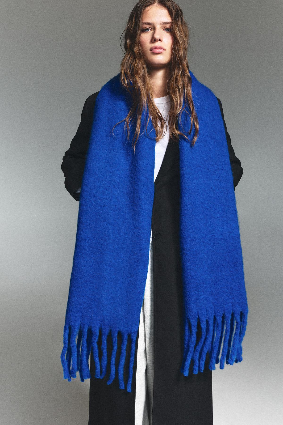 Farklı renklerde mevcut, moher görünümlü örgü maksi atkı.