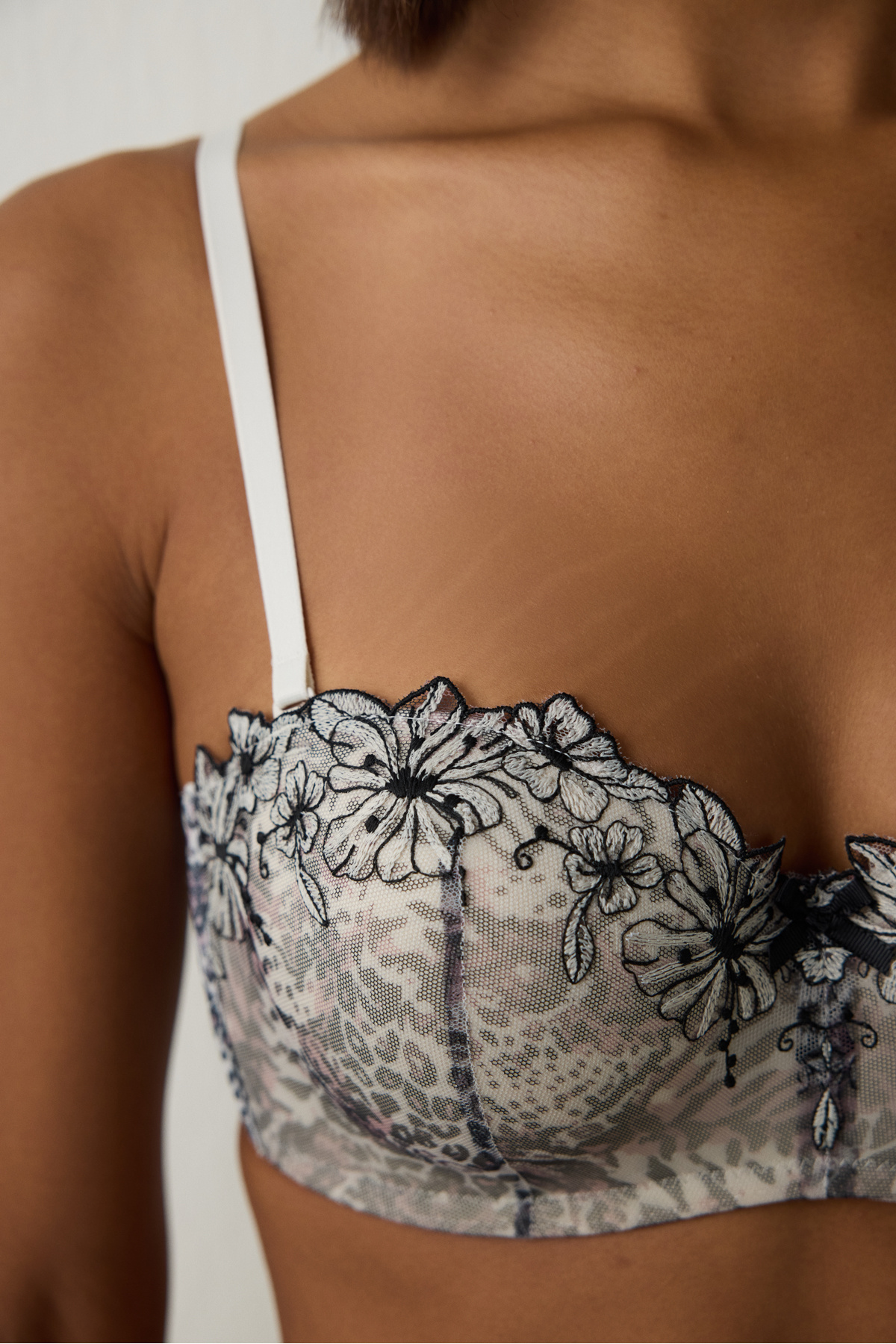 Broderie Printed Lotus Sütyen, balenli yapısıyla göğüslerine destek sağlar ve doğal görünüm sağlayan dolgusuz özelliğe sahiptir.