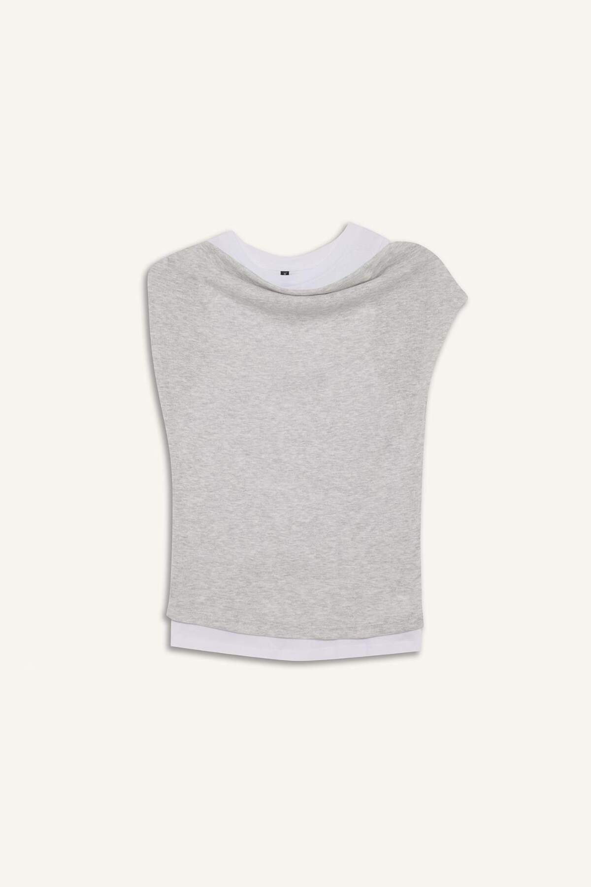 Slim fit dar kesim tek omuzlu ribana kısa kollu tişört, modern ve feminen tasarımıyla dikkat çeker.