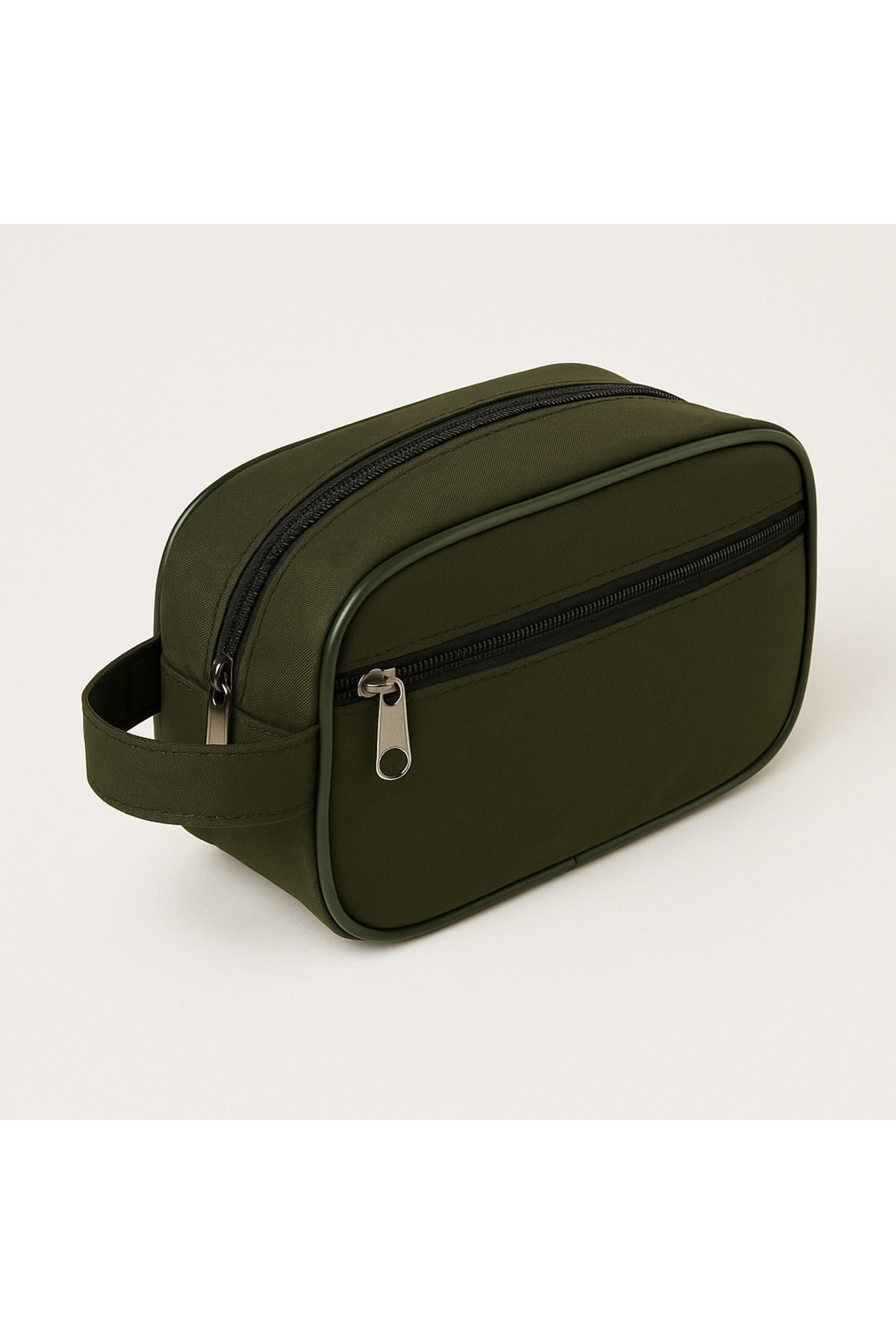 - Unisex tasarımıyla herkesin kullanımına uygun, haki renkli askeri traş çantası ve makyaj çantası.
