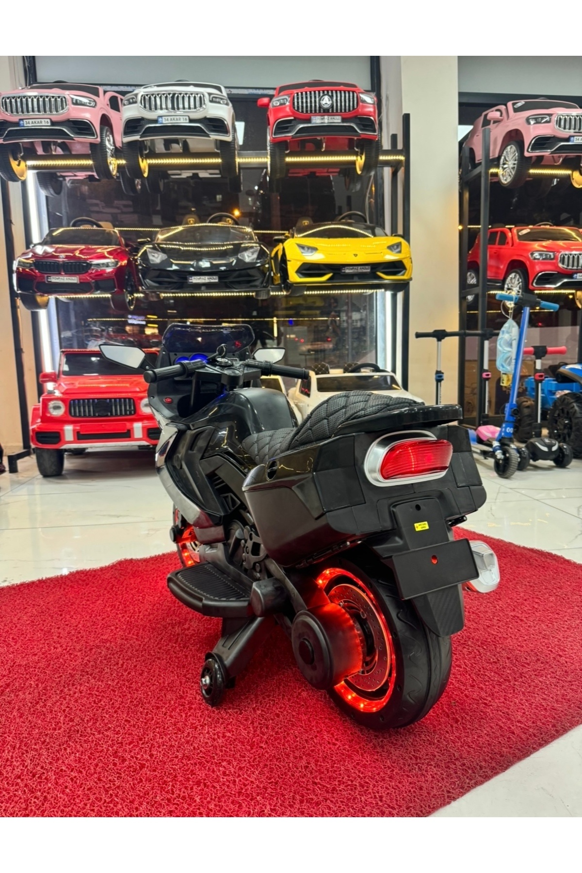 12 volt2 kademe hız ayarıİleri geri vitesli35 kg taşıma kapasitesi Led ışıklı far ve tekerlerUSB girişi ve müzik çalarlıYandan destekli tekerlerDeri koltuklu2 yıl garantili Poyraz akülü teknik servis güvencesi