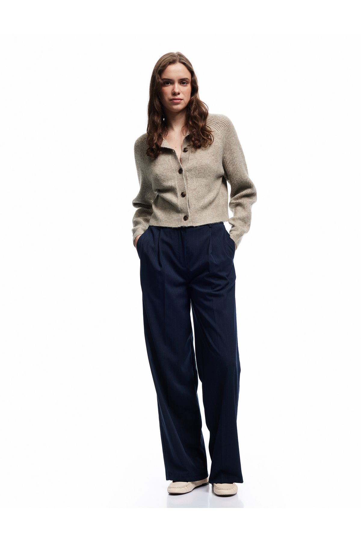 Uzun Kollu Bisiklet Yaka Düğmeli Triko Hırka