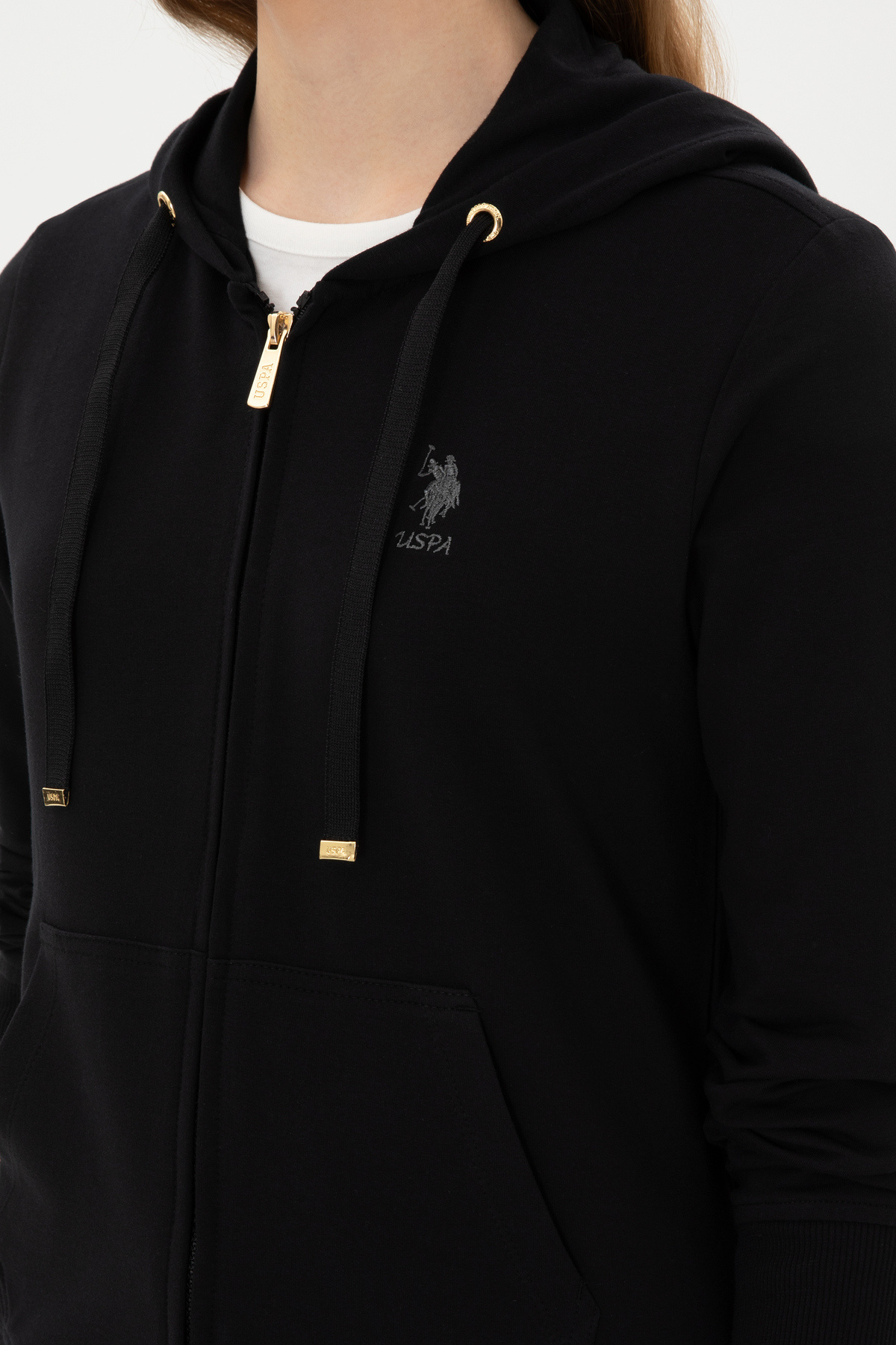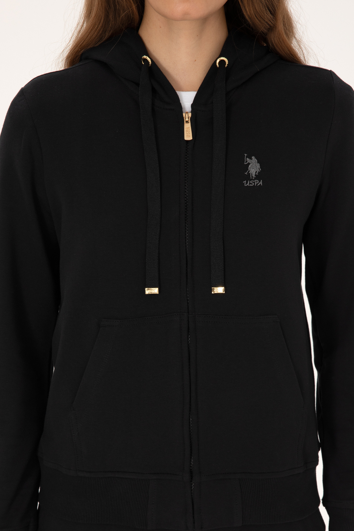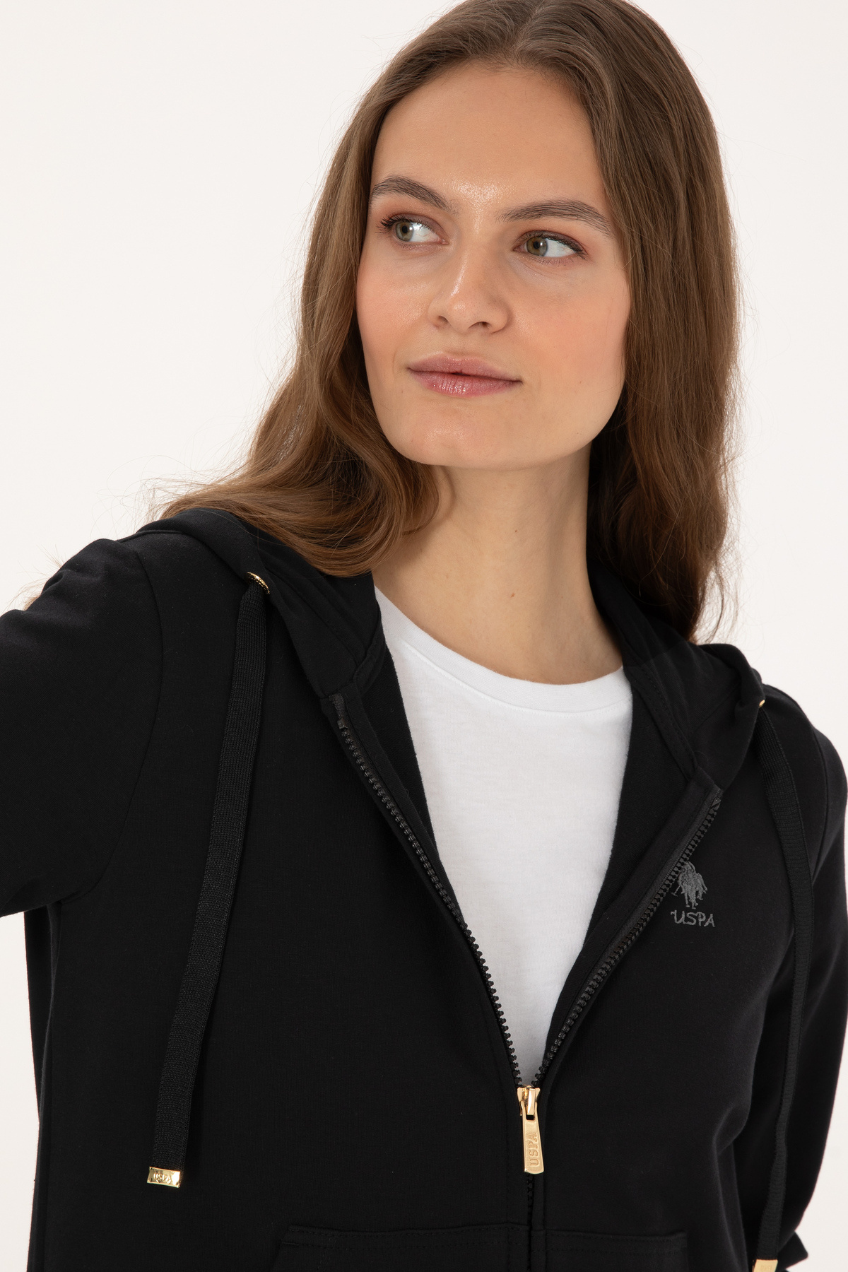 Kadın Siyah Fermuarlı Kapüşonlu Sweatshırt 50313594-VR046