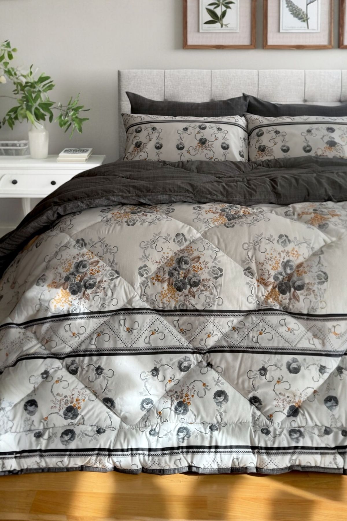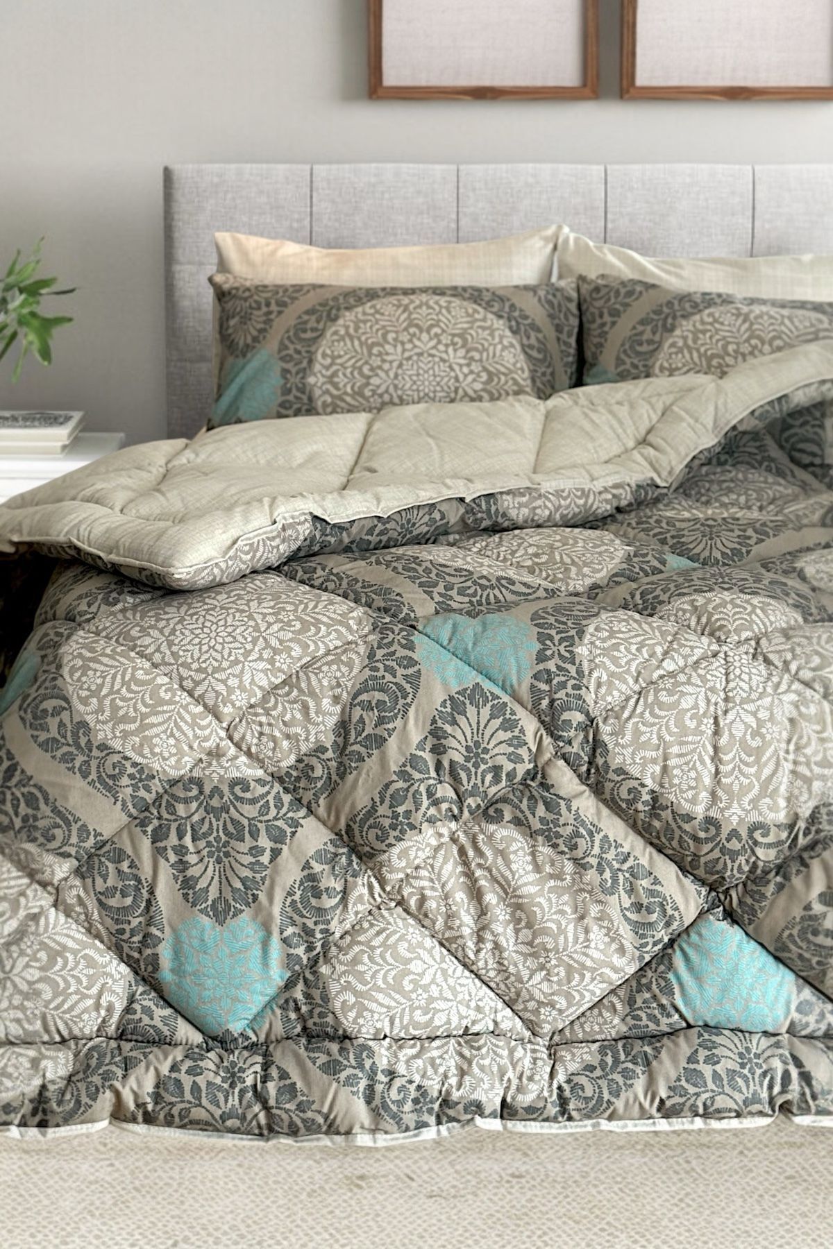 Çift Kişilik 4 Yastık Kılıflı Lastikli Çarşaflı Çift Taraflı Uyku Seti-Natura Sütlü Kahve