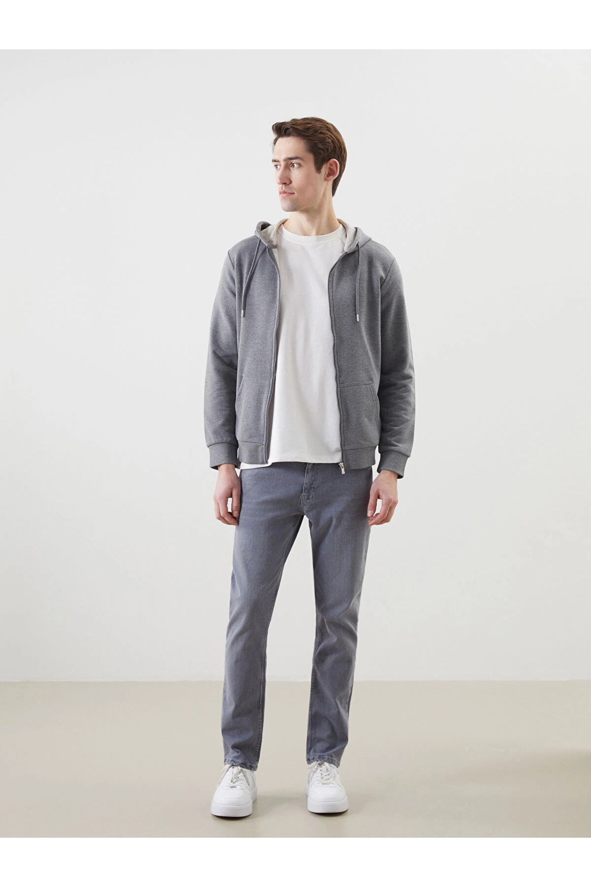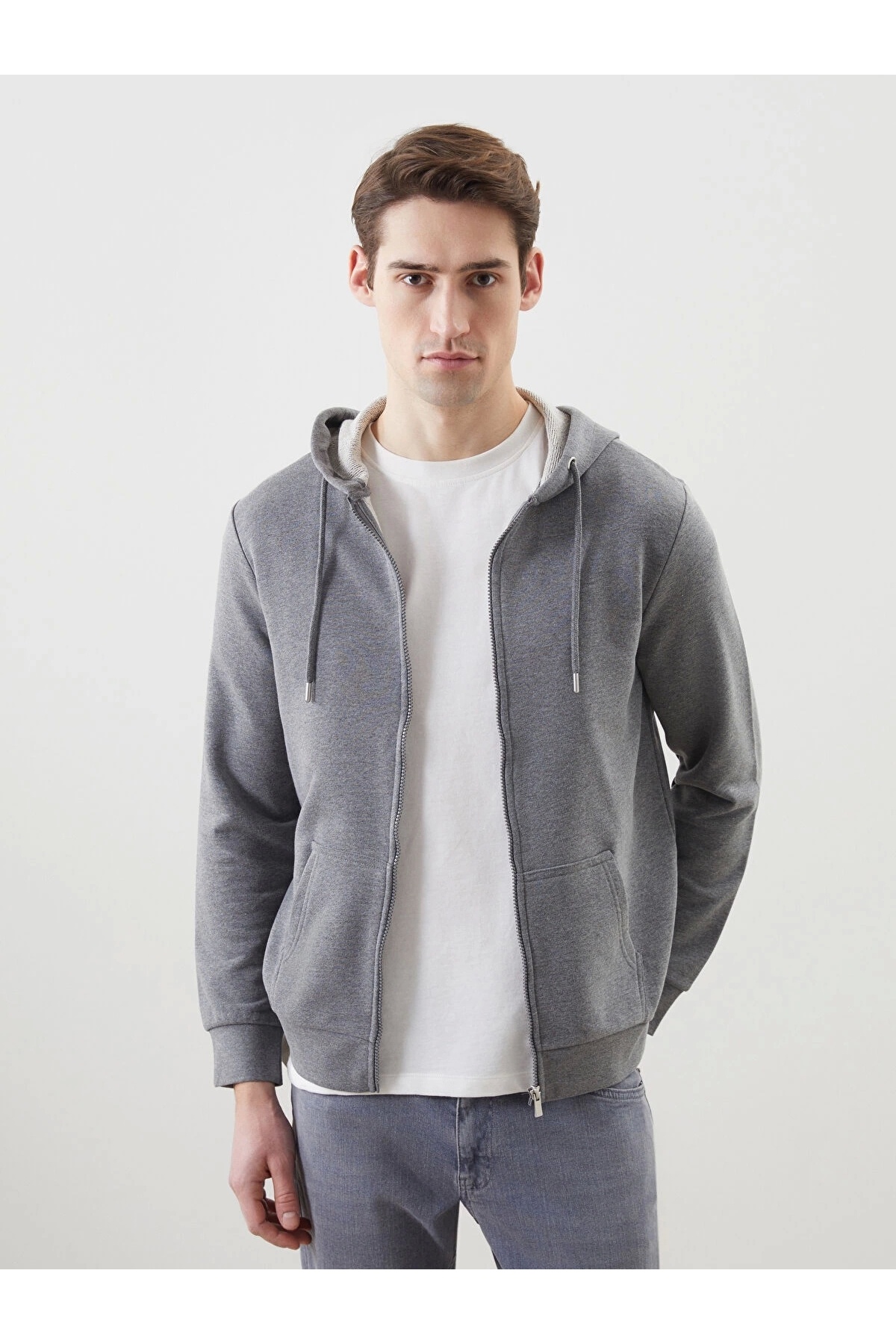 LCWAIKIKI Basic Gri Kapüşonlu Uzun Kollu Erkek Fermuarlı Sweatshirt
