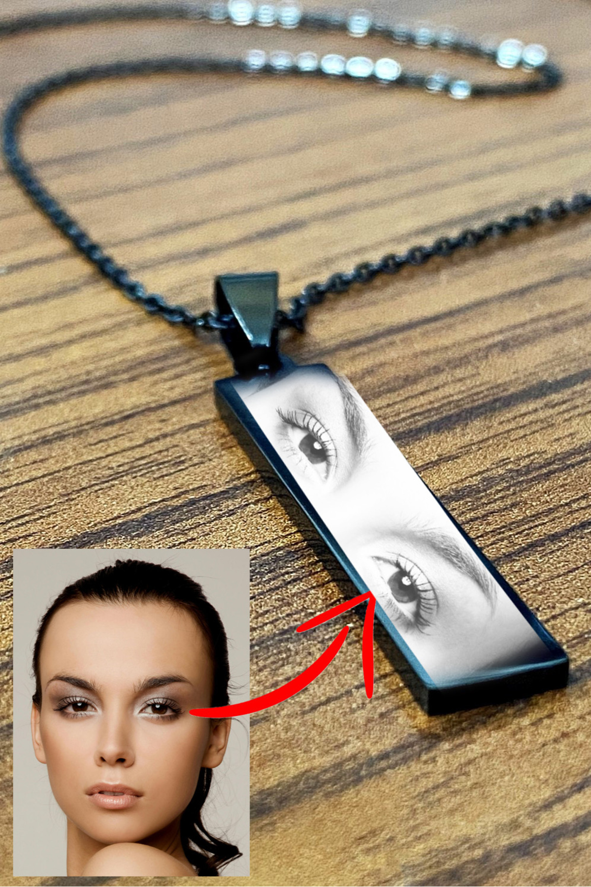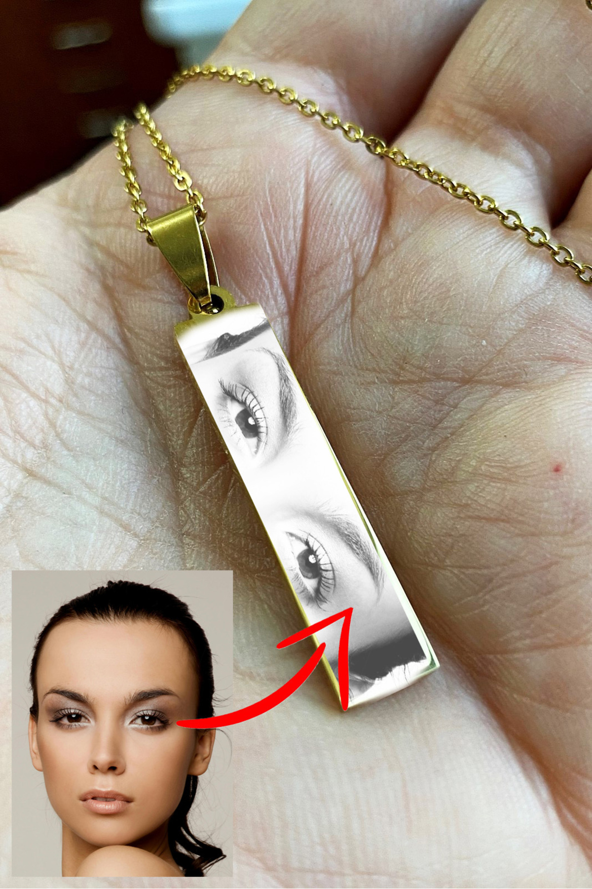 Kişiye Özel Göz Resim Baskılı Paslanmaz Çelik Kolye Eşe Sevgiliye Hediye eck43g