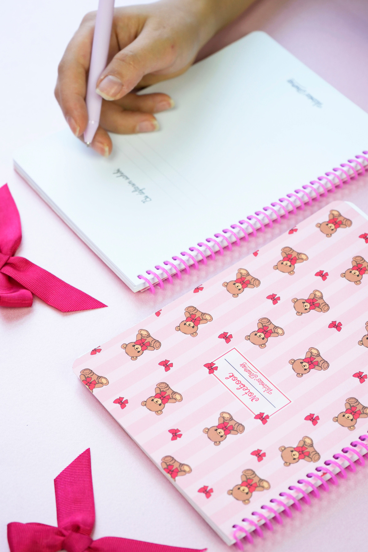 Özellikler:Boyut: A5 (14,8 x 21 cm) – çantanızda kolayca taşıyabilirsinizSayfa: 120 çizgili + bilgi sayfası + ders programı + sınav & proje sayfası (toplam 124 sayfa)Kağıt: 70 gr 1. hamur kâğıt – pürüzsüz yazım deneyimiKapak: Karton, Soft Touch ipeksi selefon kaplama – dayanıklı ve şıkCilt: Spiralli – kolay açılır, düz dururPaket İçeriği: 2 farklı ayıcık tasarımı bir aradaNeden Tercih Etmelisiniz?Bu defter seti, hem tatlı kapak tasarımlarıyla sizi motive eder hem de düzenli kalmanıza yardımcı olur.