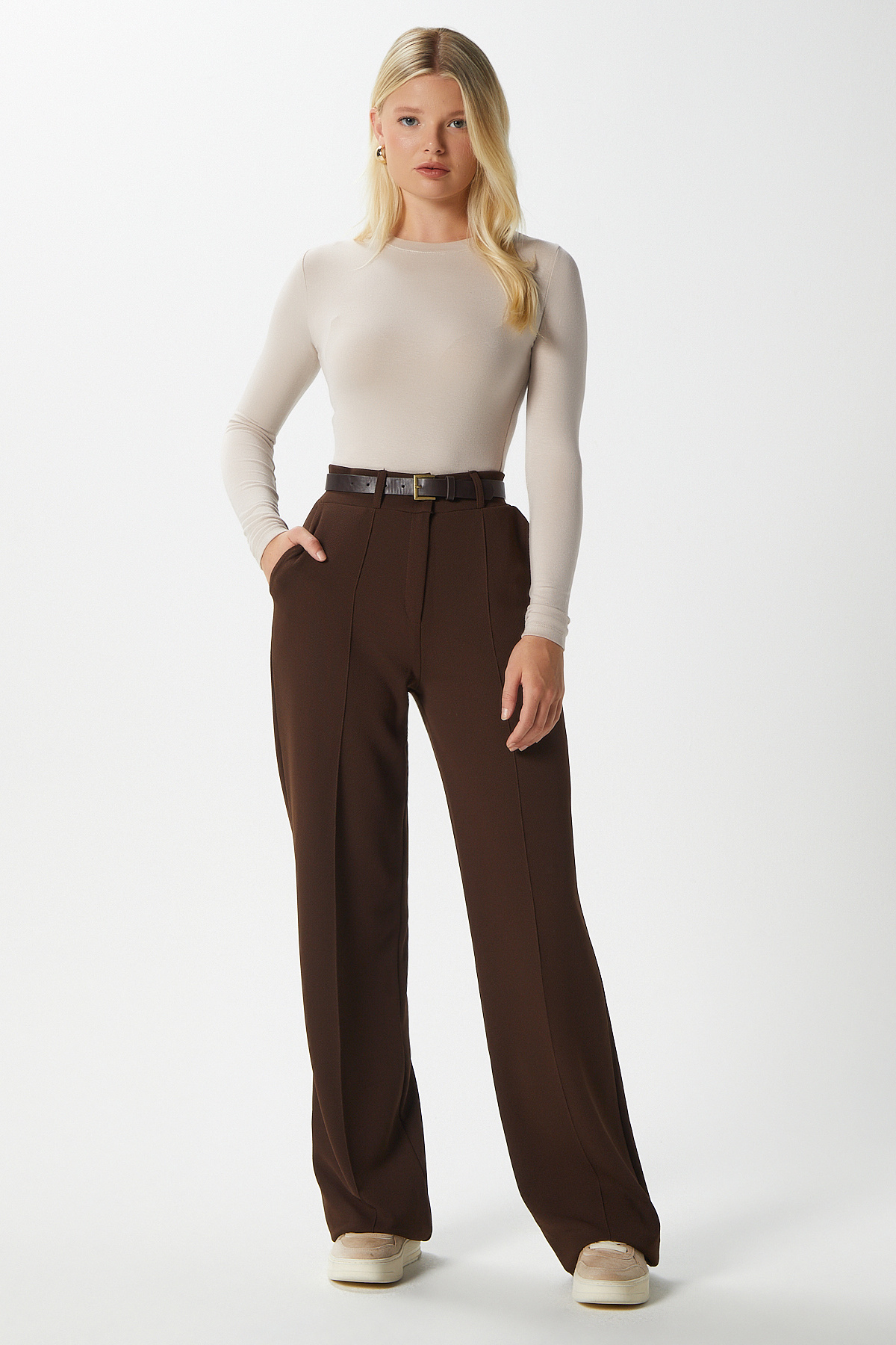 Likra Serisi Lift Süs Dikişli Esnek Açık Kahverengi Palazzo Pantolon - Süs dikişleriyle dikkat çeken bu model çık bir görünüm oluşturur.