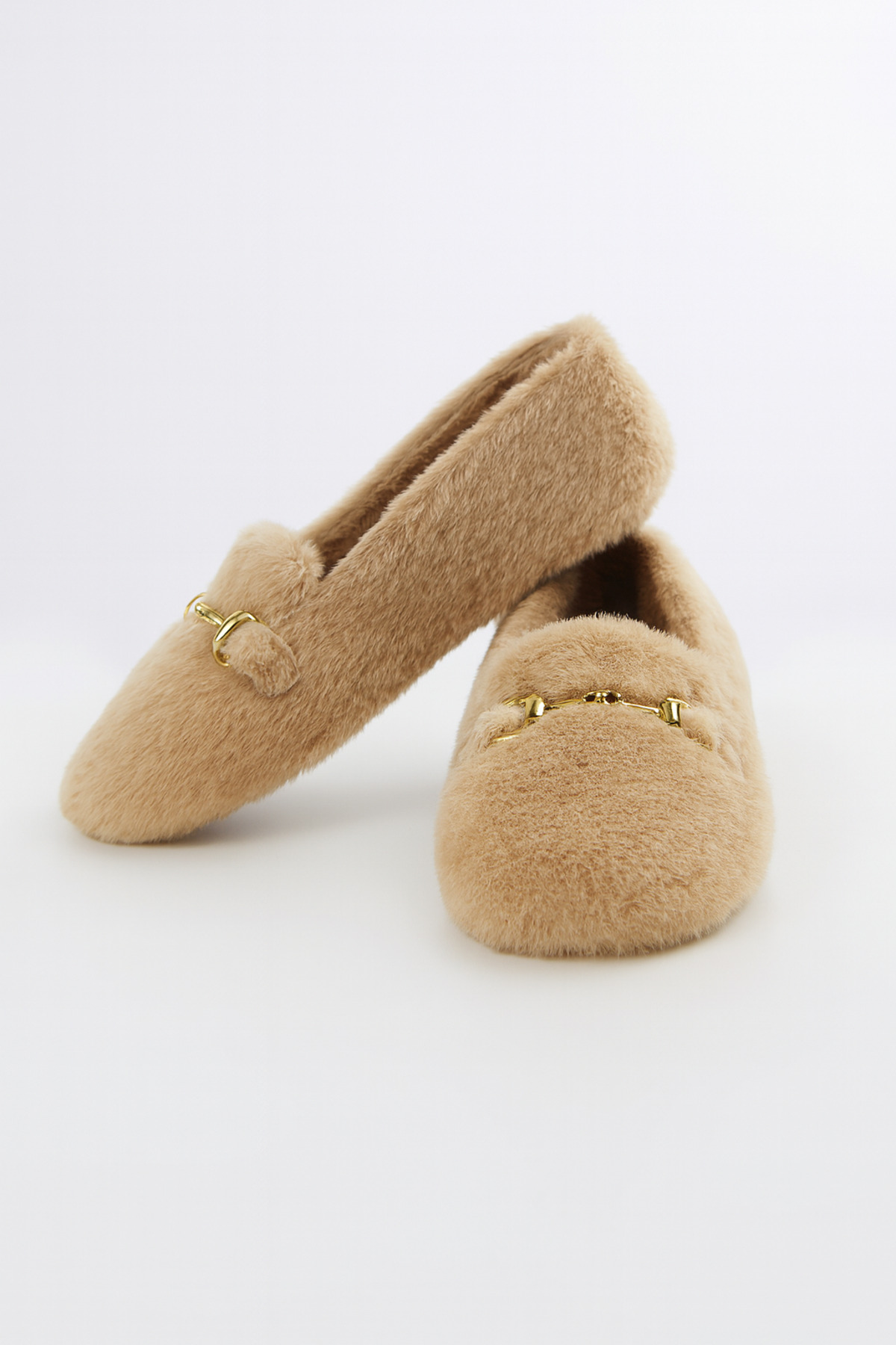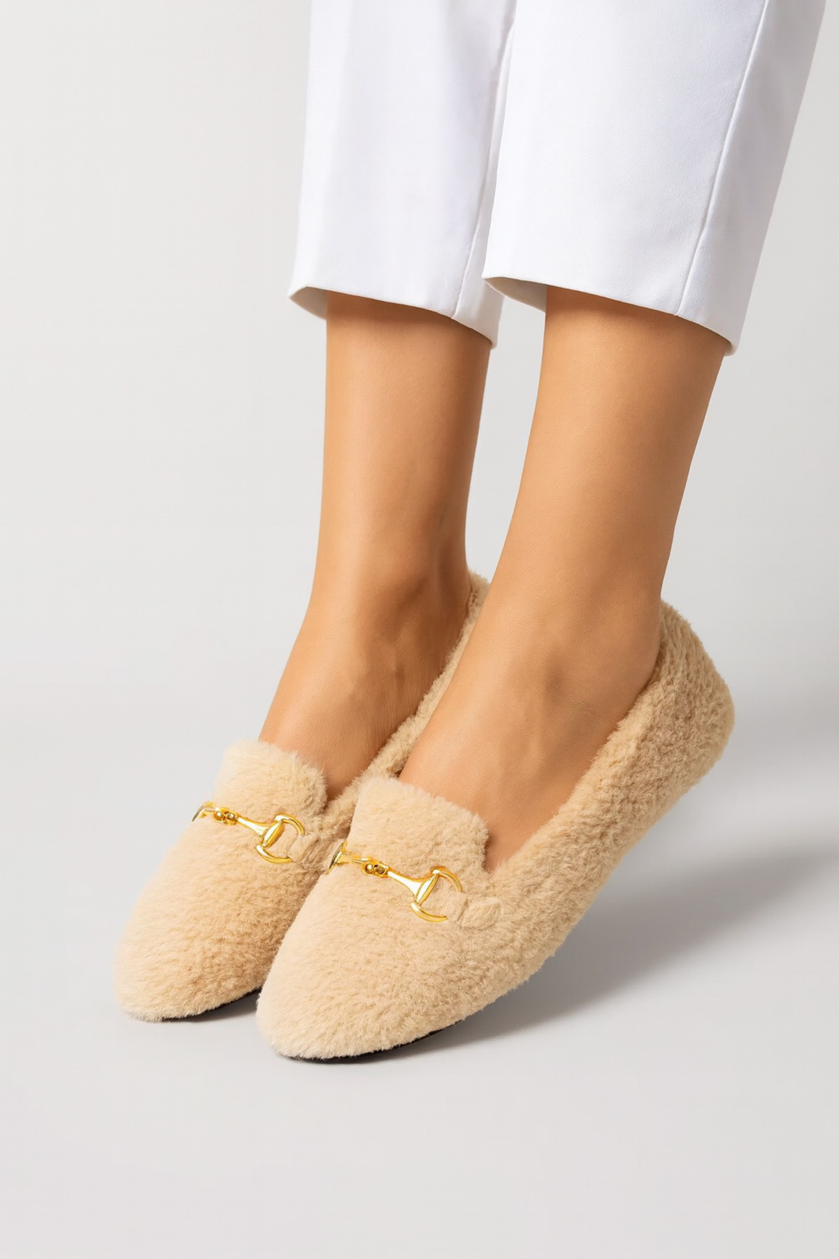 • Sade ve şık bej tonu, tokalı tasarımıyla birleşti: Beyond Kadın Peluş Ev Babeti ile konforu keşfedin.