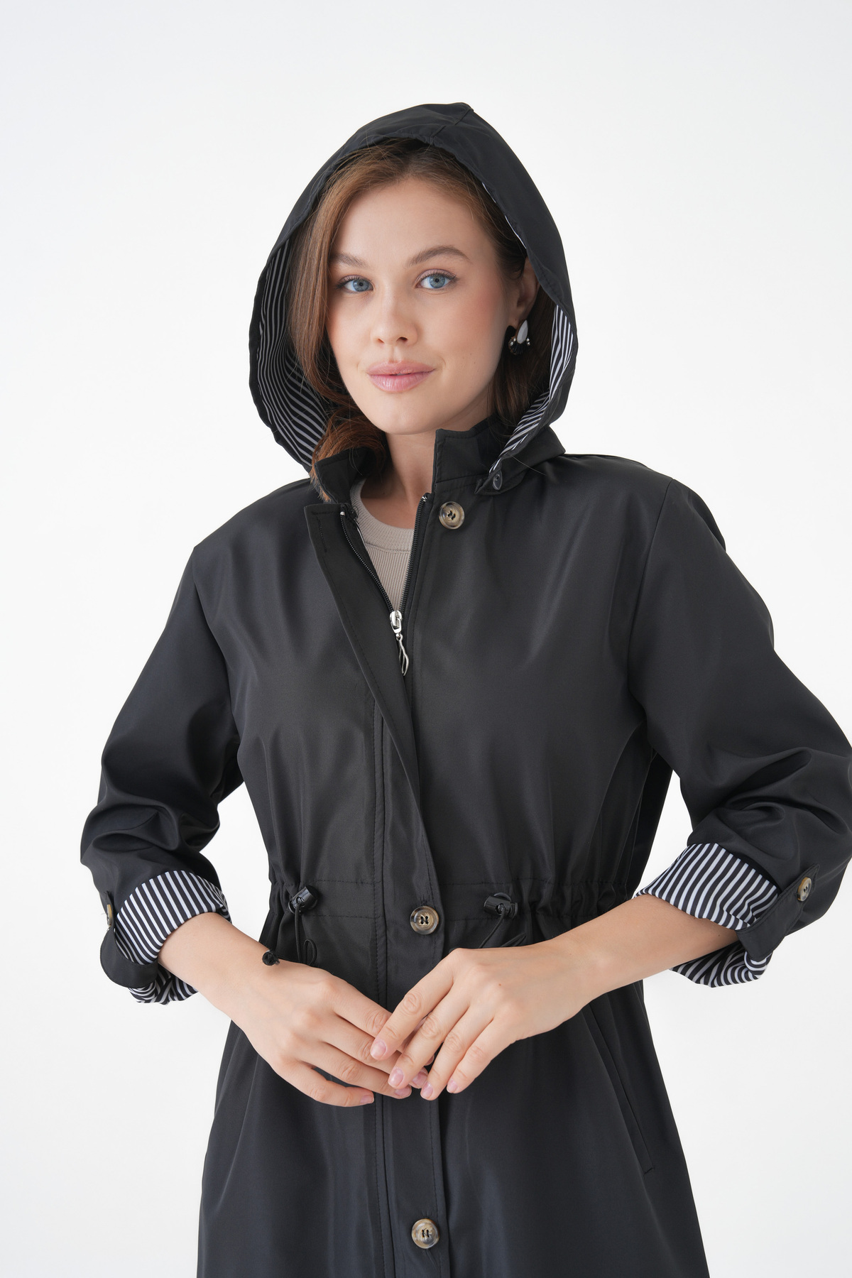 - Çıkarılabilir düğmeli kapüşon özelliği sayesinde farklı tarzlar yaratma imkanı sağlar.