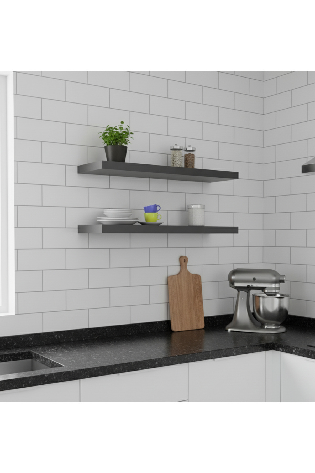 Premium MDF ürün 2'li Set 50x15 cm Gizli Montaj Modern Kitaplık Mutfak Banyo Salon Rafı