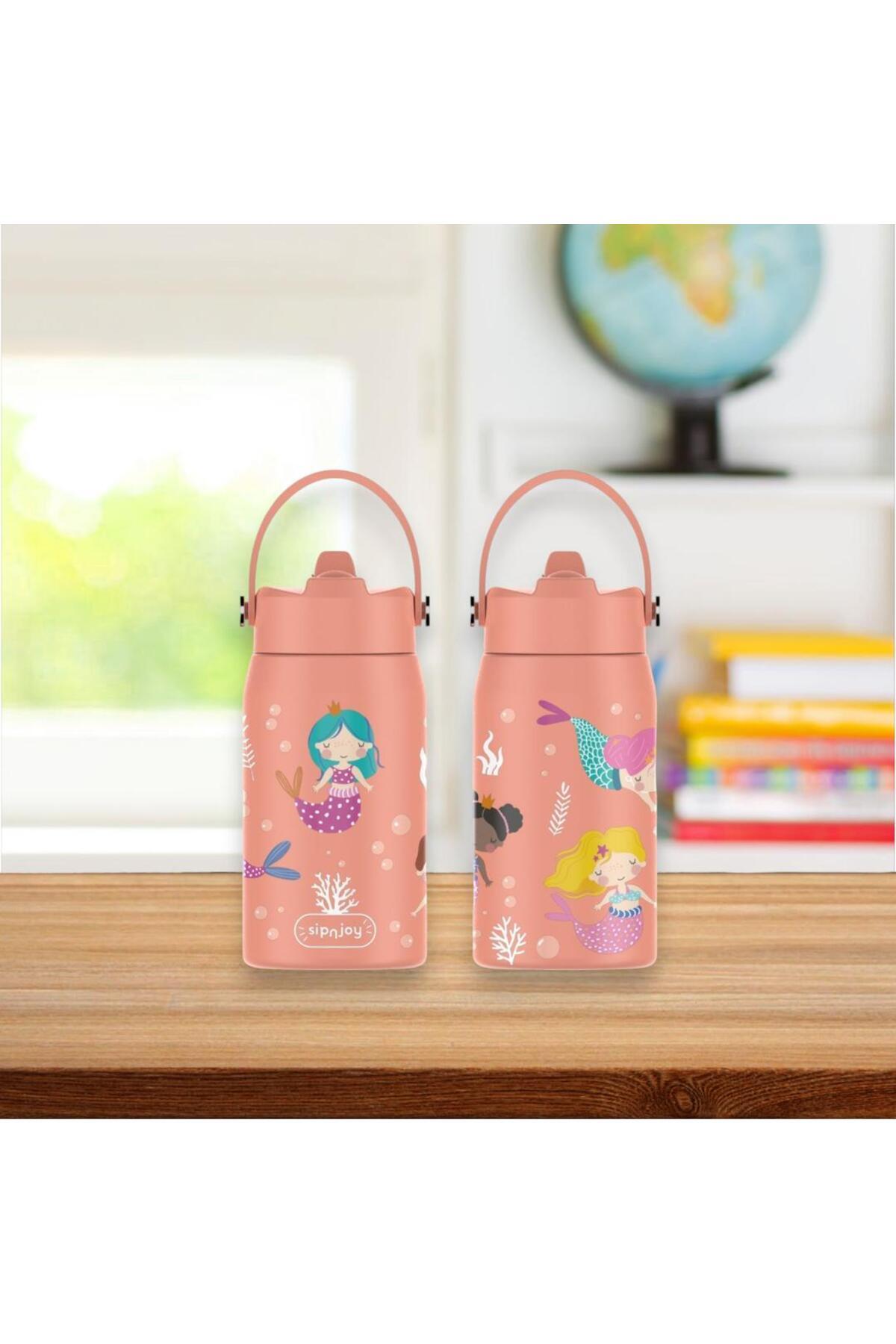 Çocuklar için özel olarak tasarlanan bu çift katmanlı vakumlu paslanmaz çelik şişe, içecekleri uzun süre ideal sıcaklıkta tutar.