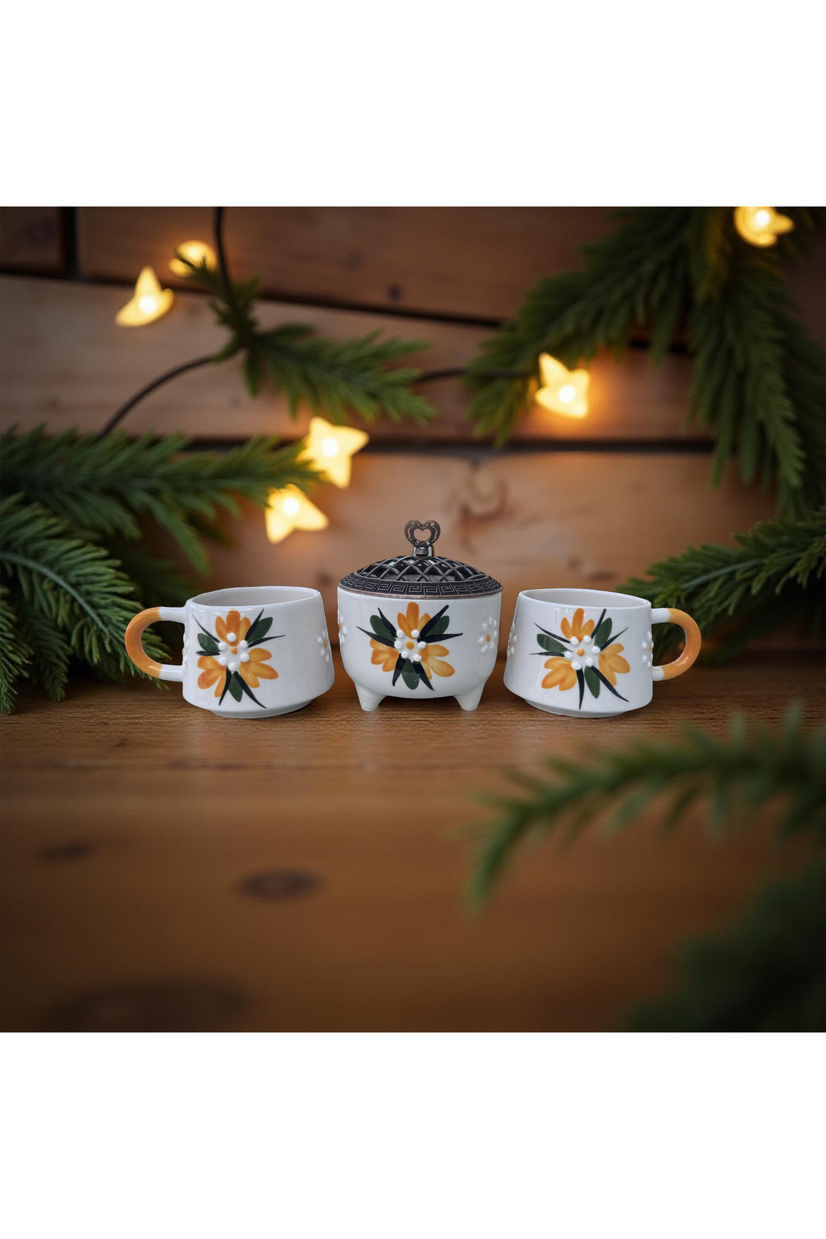 Ürün adı Sarı Çiğdem Çiçeği Desenli 2 Adet El İşi Seramik Kupa 1 Adet Ayşen Şekerlik: