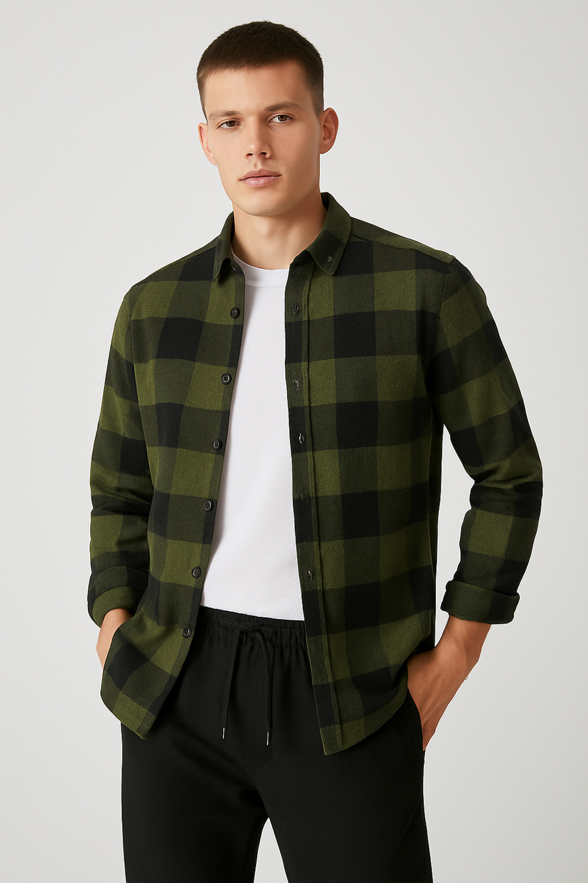 - Yeni sezon trendlerine uygun haki ve siyah kareli deseniyle şık bir görünüm sunar.