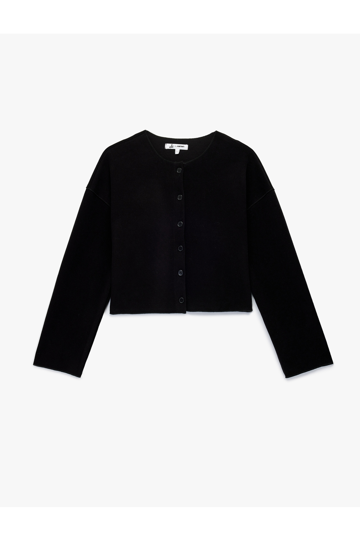 Uzun Kollu Bisiklet Yaka Düğmeli Triko Hırka