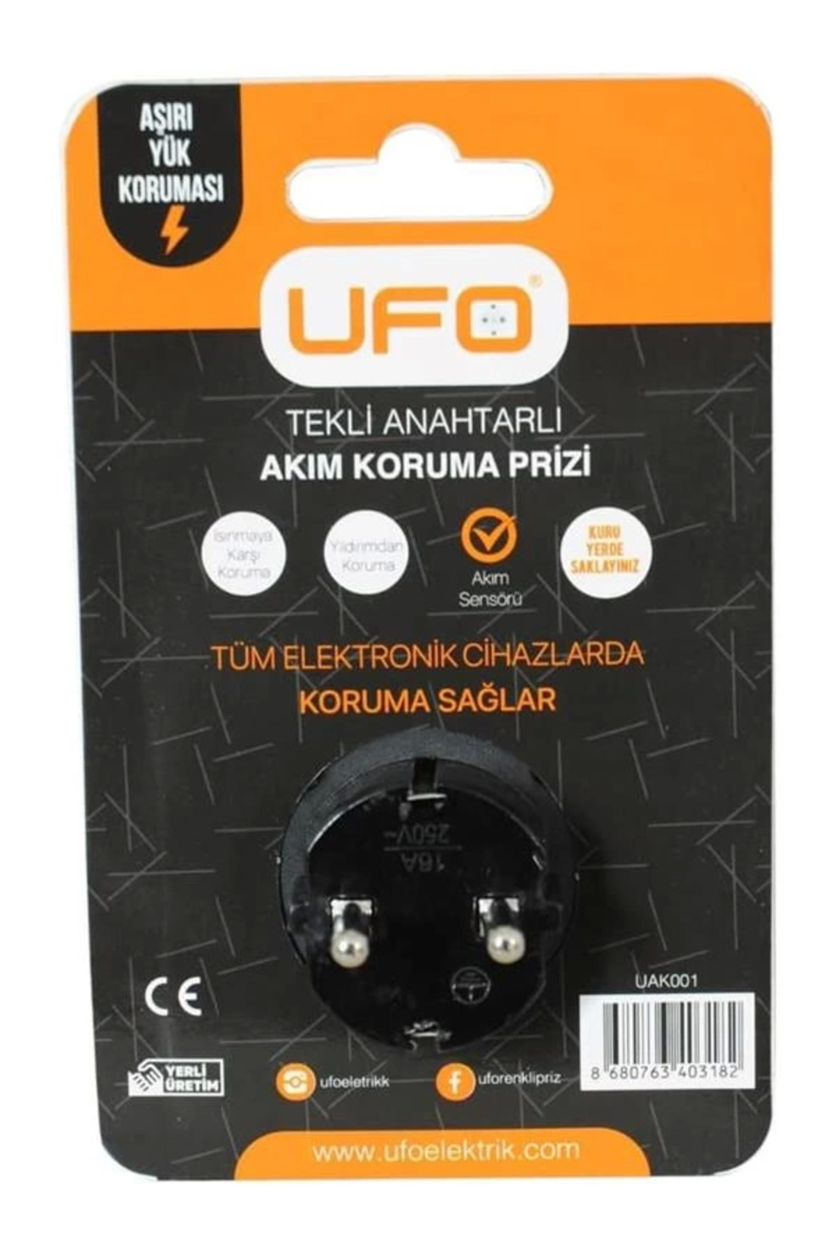 Tekli Akım Korumalı Anahtarlı Priz 16 amper 250 Volt gerilim taşır Maksimum yük 3500 Watt Aşırı Yük Koruması Akım Sensörü Siyah renk KORUMA AÇMAKAPAMA Tüm Elektronik ve Elektrikli cihazlarda elektrik akımında yaşanan akım ve voltaj dalgalanmalarına karşı Tam Koruma Sağlar Işıklı Açmakapama anahtarı ile fişi çekmeden elektrik akımını kapatma sağlar YÜKSEK KORUMA Elektrik kesinti ve akım dalgalanmalarına karşı elektrikli v elektronik cihazlarda koruma sağlar Isınmaya Karşı korumalıdır Yıldırım çarpmasına karşı koruma sağlar KALİTELİ ÜRETİM CE belgeli tescilli markalı üründür Siyah ve Beyaz olmak üzere 2 farklı renktedir Yerli Üretim Kapalı ortamlarda (ev işyeri garaj ofis) kullanımı uygundur Suyla temas eden yerlerde kullanmaktan kaçının