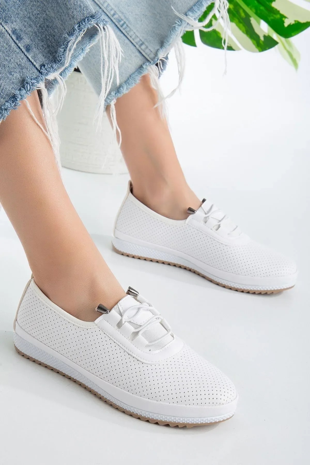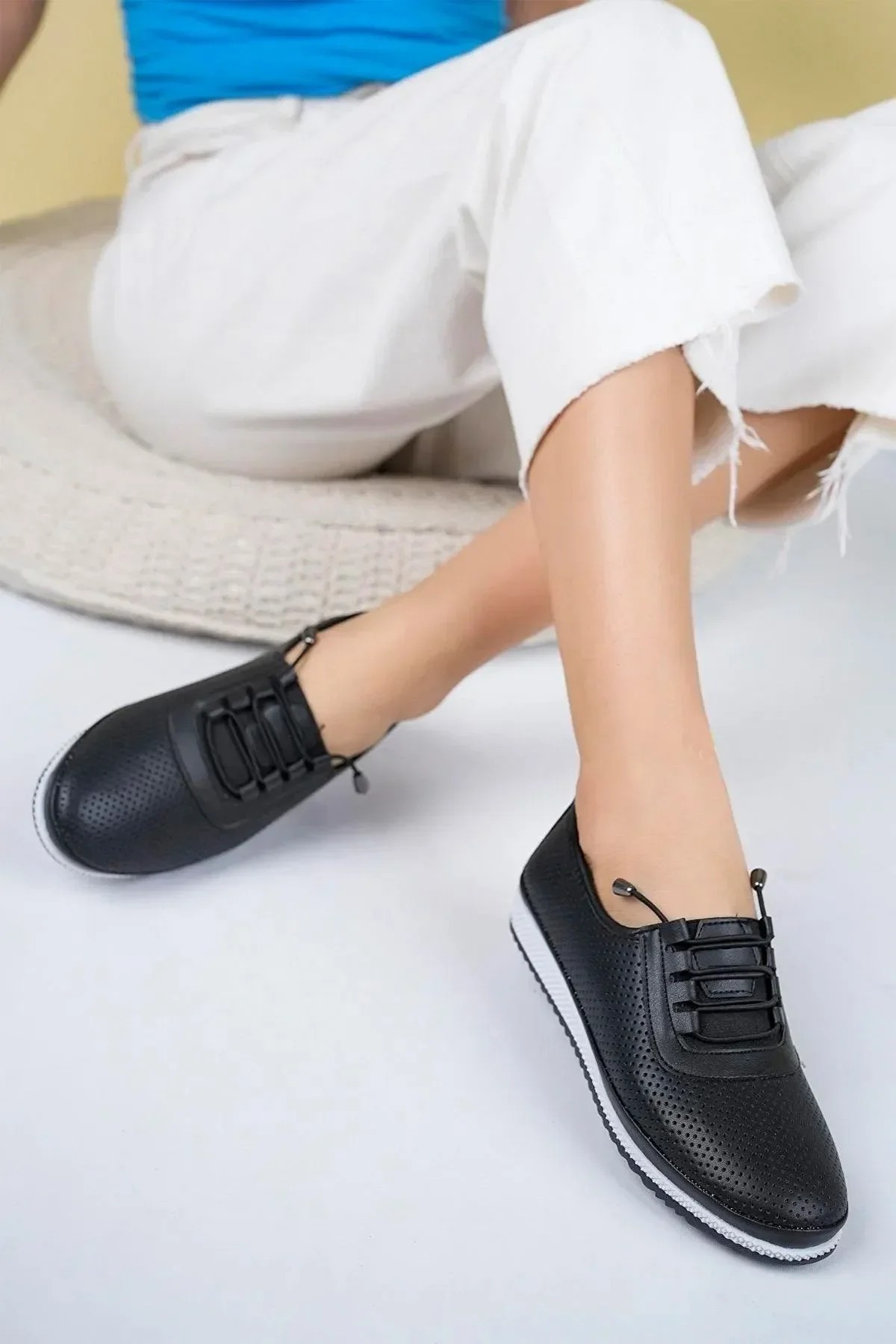Kadınlar için tasarlanmış lazer kesim detaylarıyla şık ve rahat günlük ayakkabılar! Bu ayakkabılar, hem anne iş-ofis ortamında hem de günlük kullanımda mükemmel bir seçenek sunar.