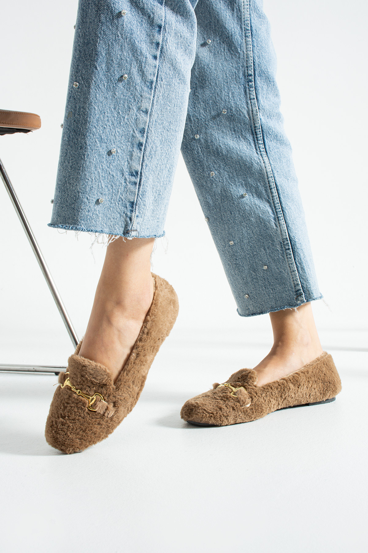 Kadın Taba Tokalı Kışlık Babet Ev ve Dış Mekan Ayakkabısı