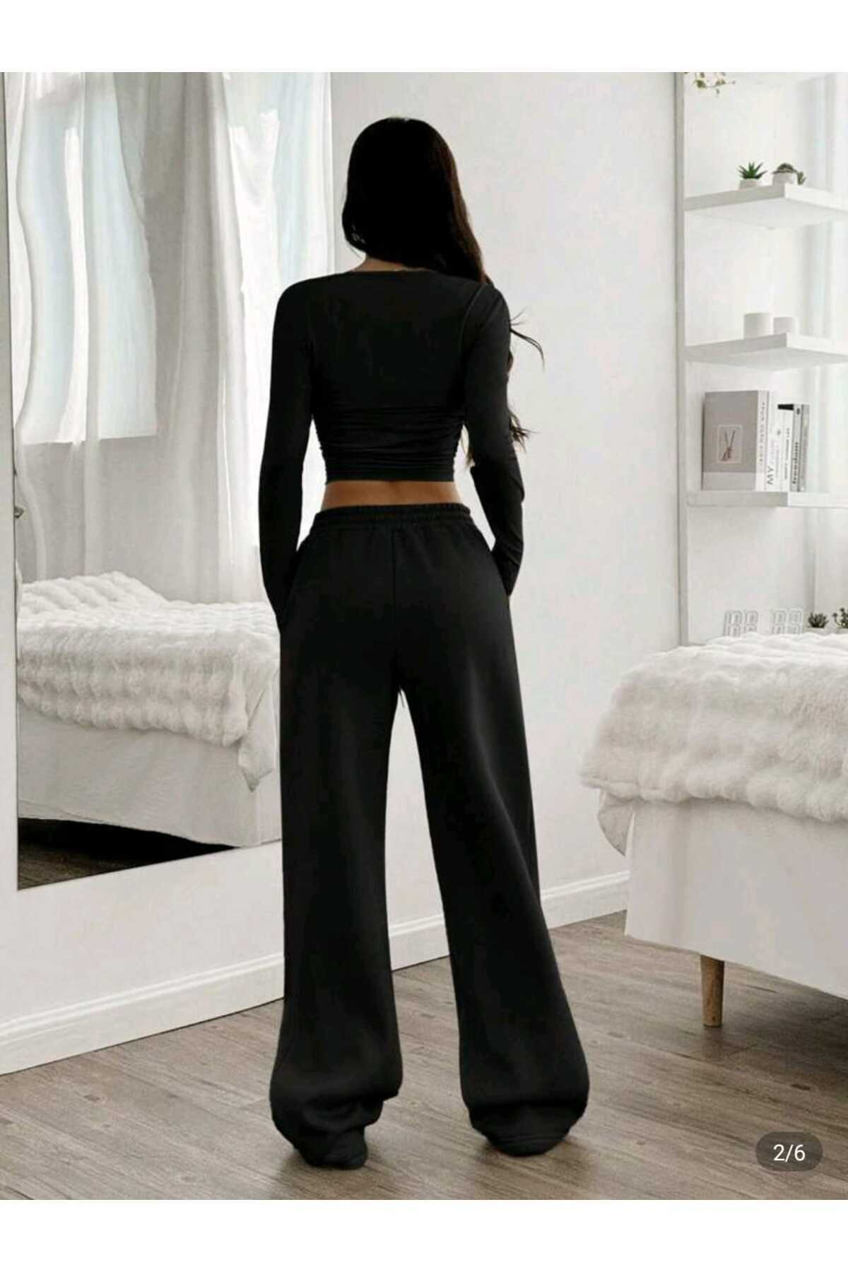 - Uzun paça boyu ve geniş paça kesimi ile modern ve rahat bir siluet oluşturur.