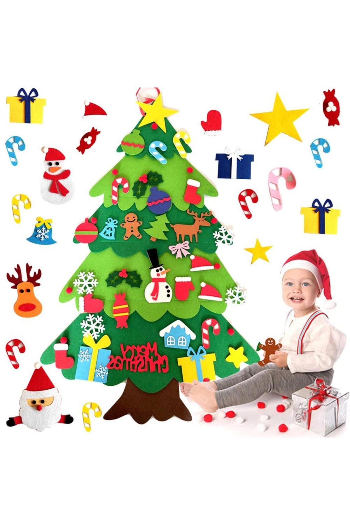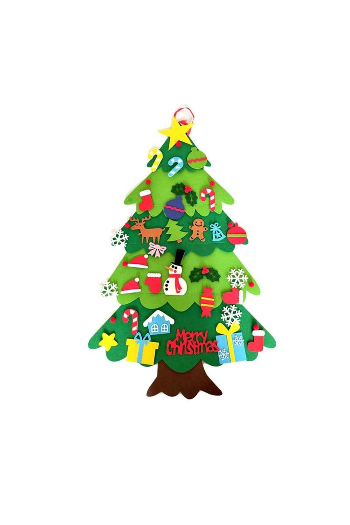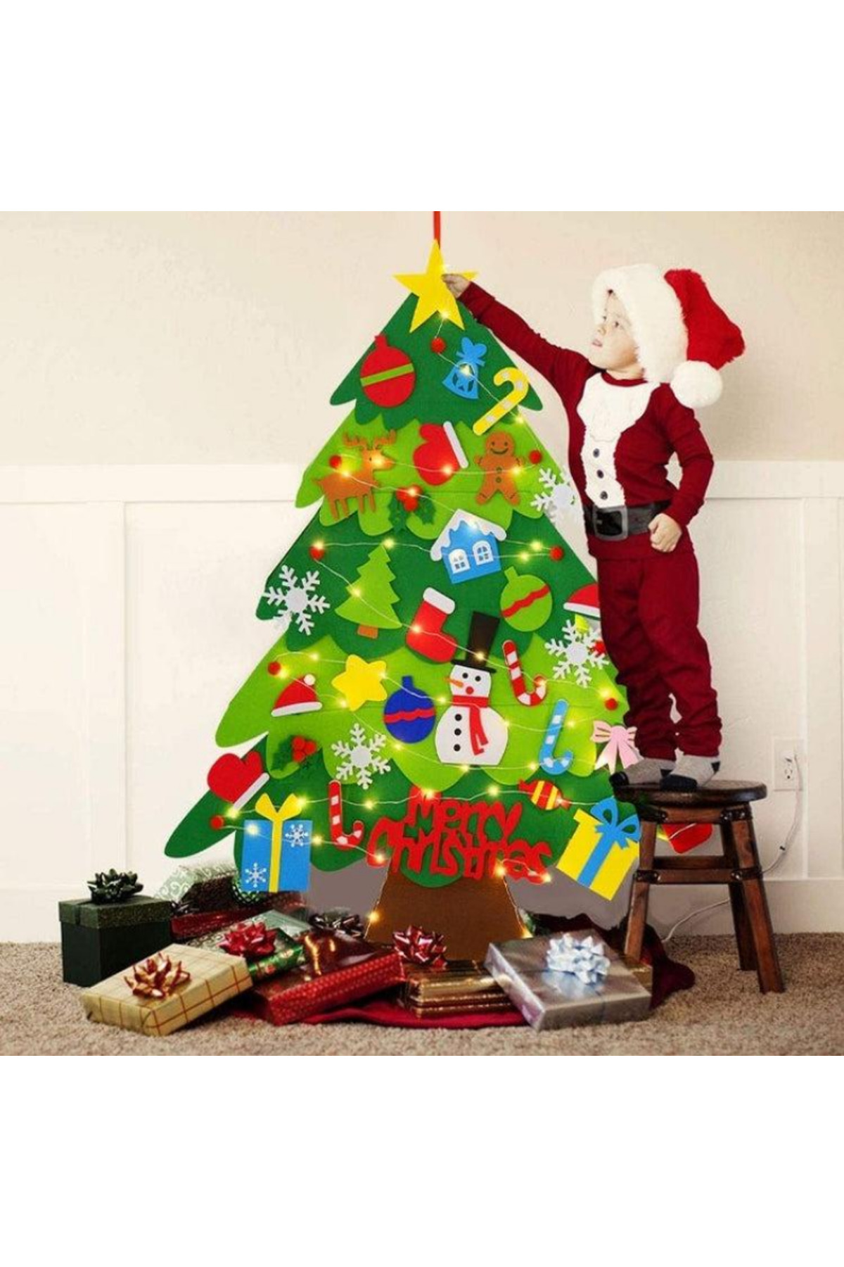 Çocuk Keçe Figürlü Yılbaşı Ağacı, Asılabilir, 32 Parça, 5metre ışıklı Yeniyıl ağacı, 70x100 cm