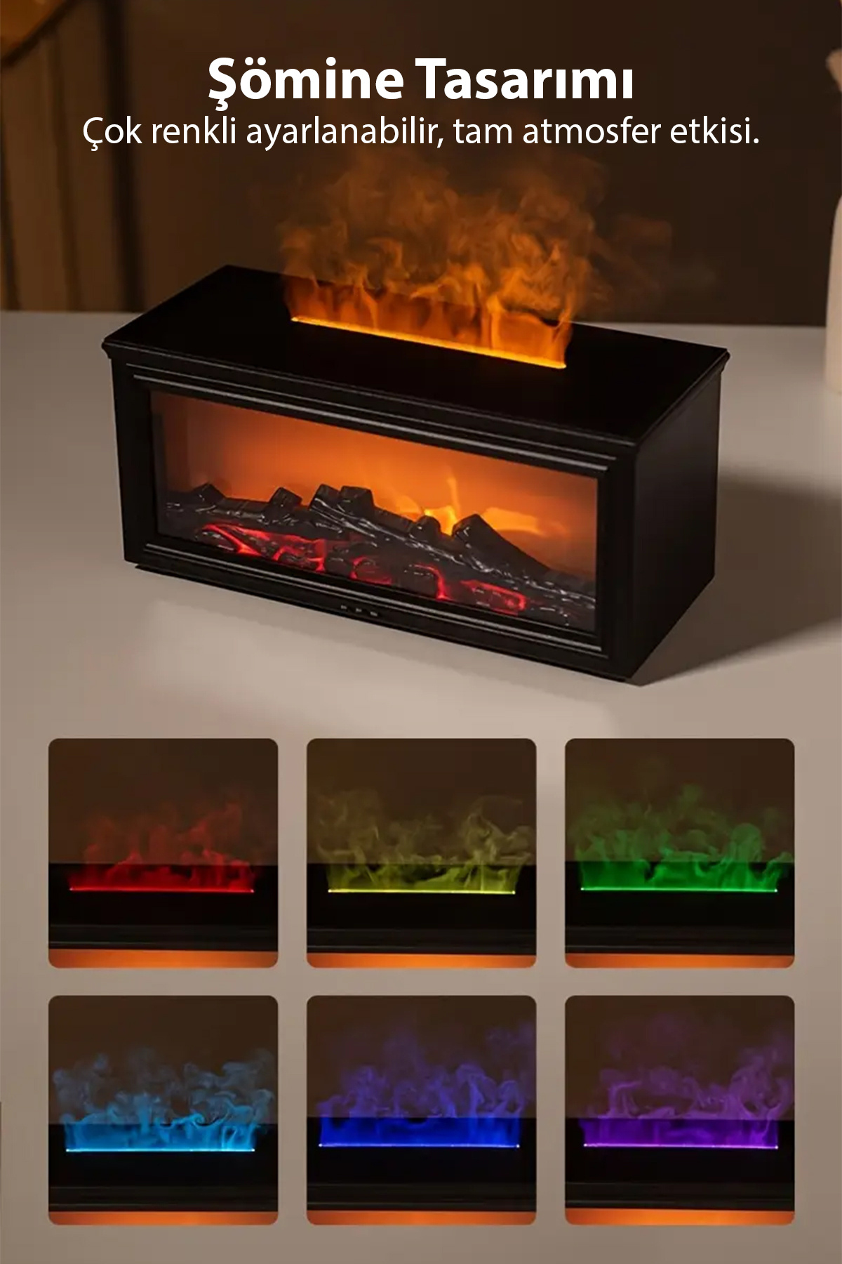 A4 Şömine Esintili Aromaterapi Difüzörü Ultrasonik Hava Nemlendici SİYAH