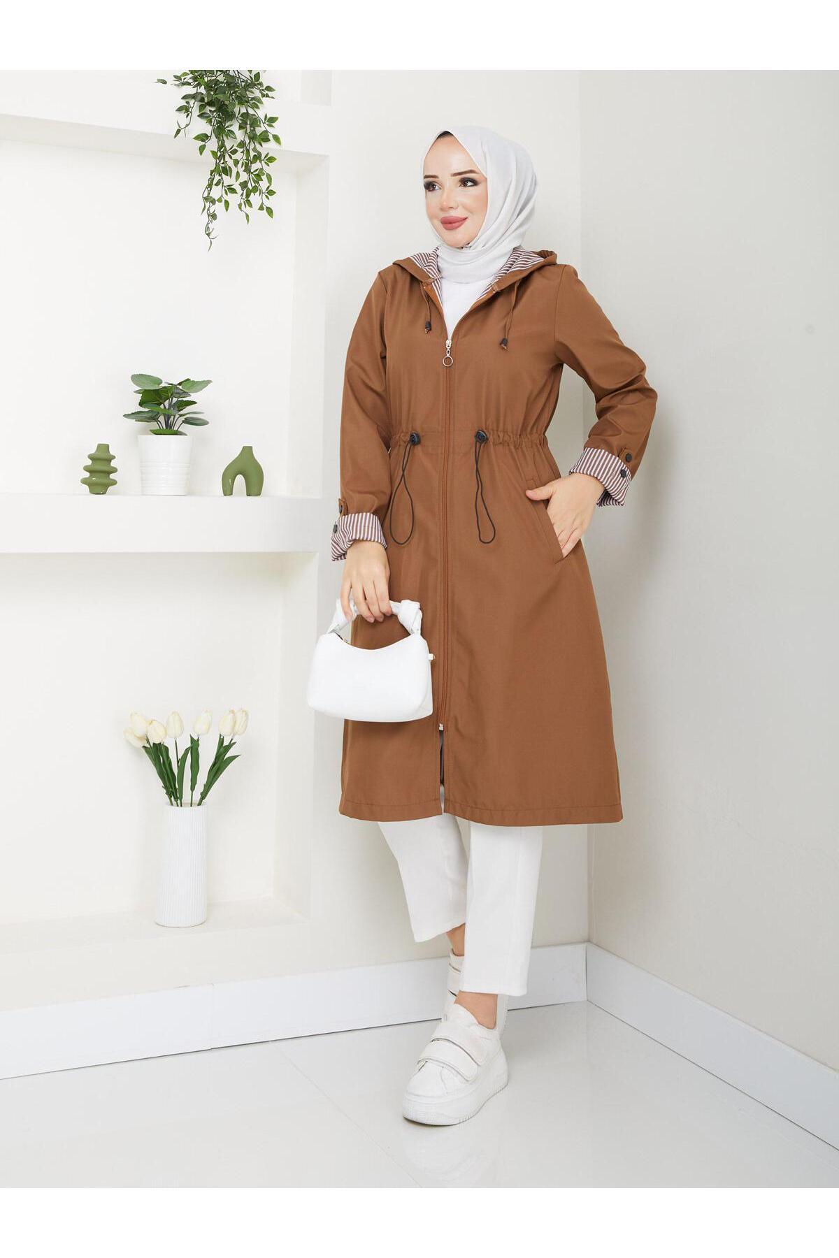 Çizgili Mevsimlik Trençkot - Rema Butik Su geçirmeyen kumaş yapısı ve yumuşak dokusuyla mevsimlik olarak tercih edilebilir dolabınızın kapsül ürünü 40/42/44/46/48/50/52 beden aralığı 110 cm uzunluk
