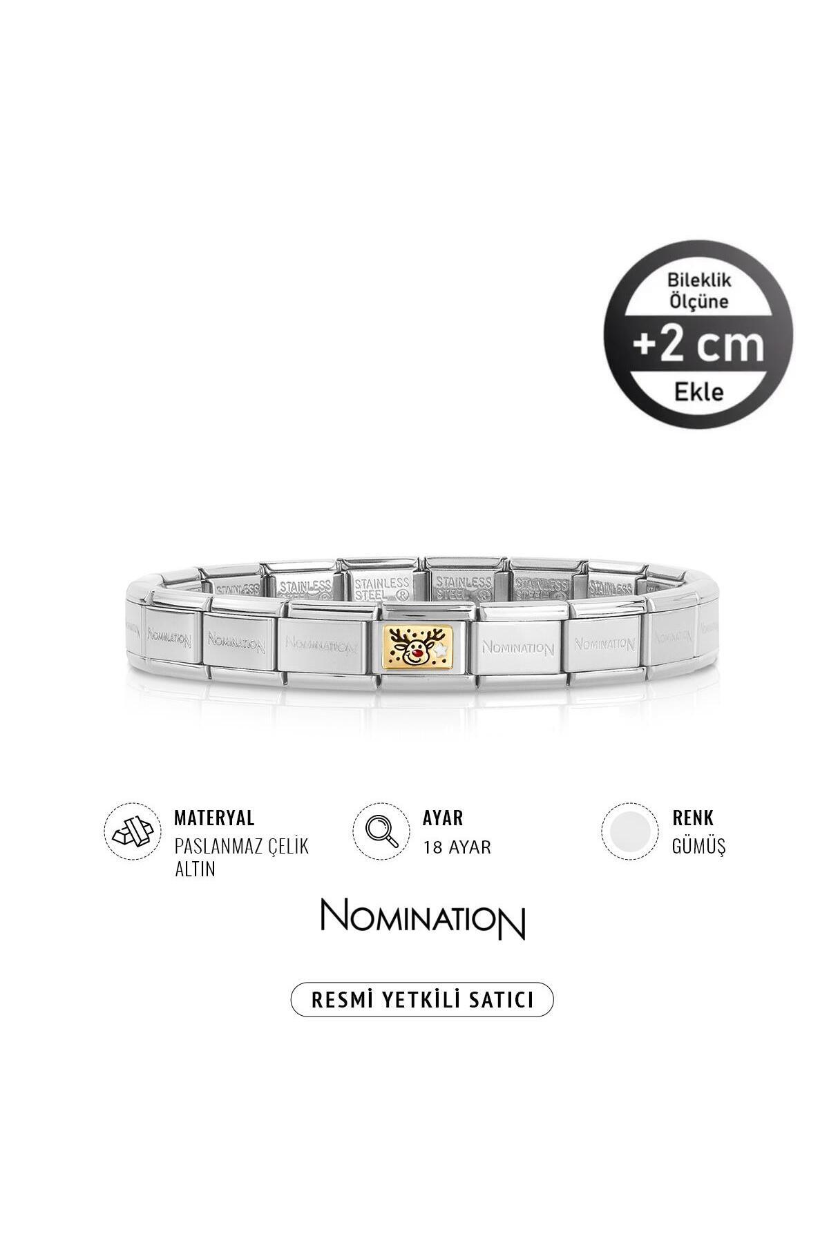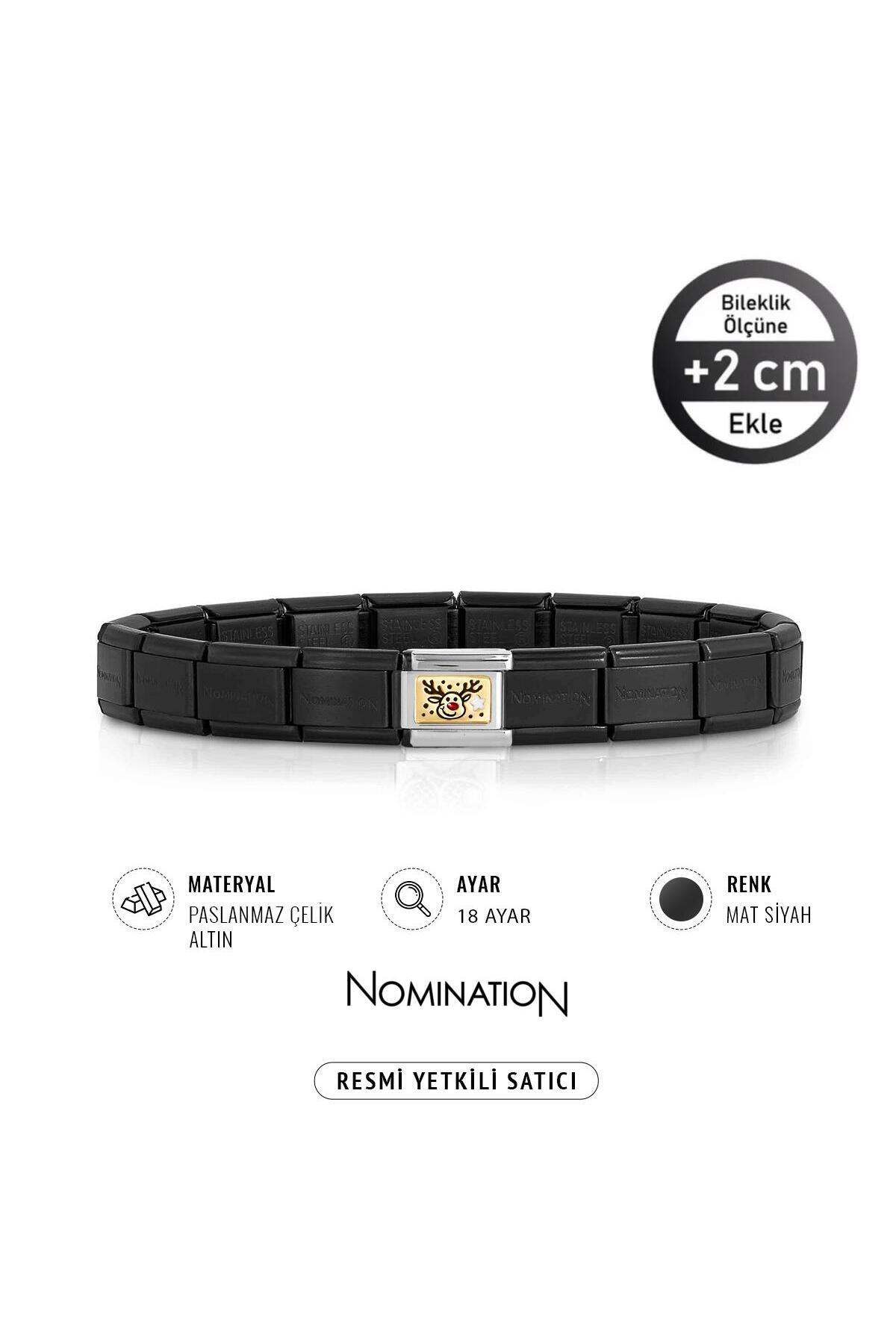 Italy Composable 18 Ayar Altın Geyik Ve Çelik Bileklik PARLAK LACİVERT